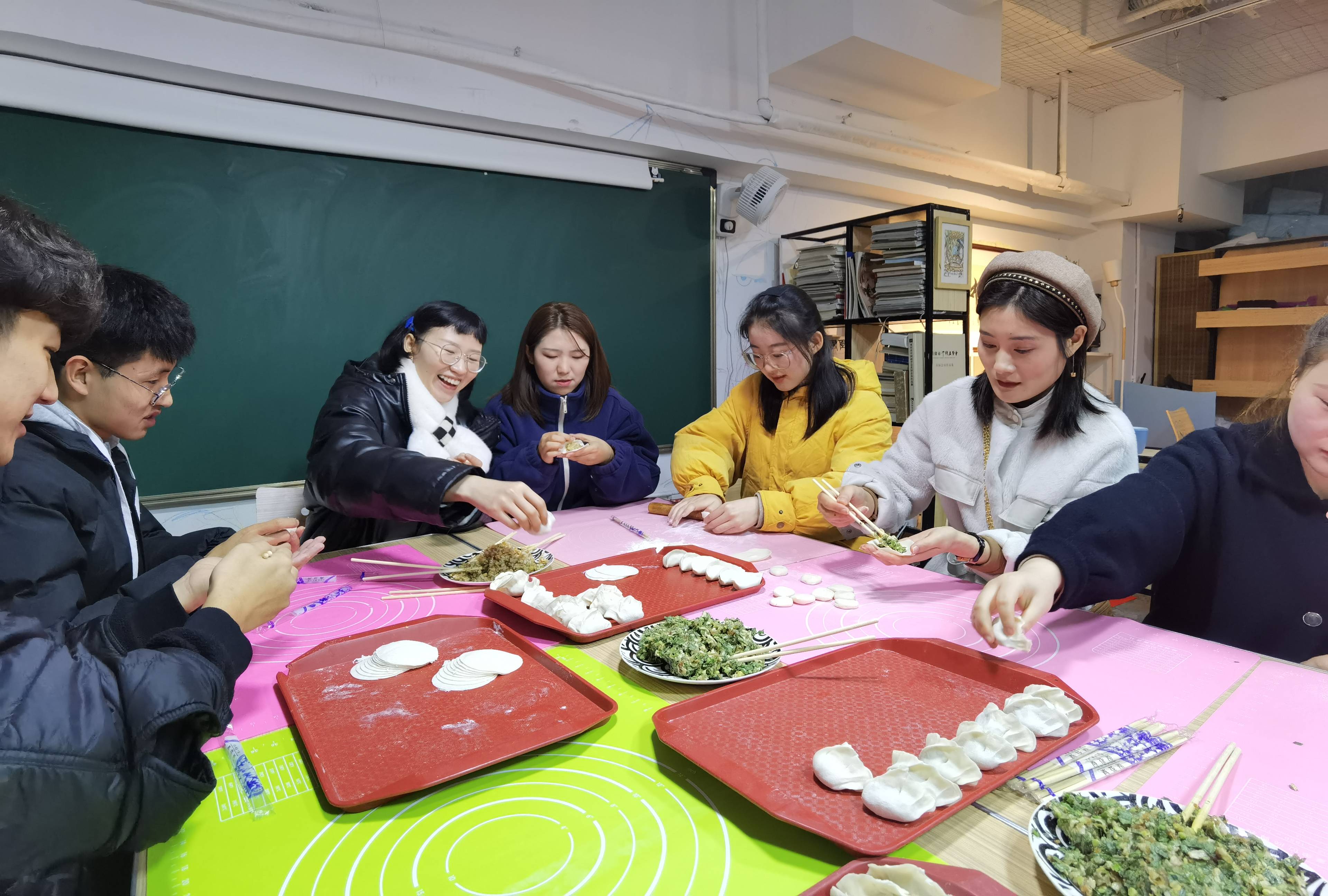 除夕前三天,美术学院留校学生与老师们欢聚一堂,一起和面、擀皮、包饺子、写春联,喜迎新春佳节。在温馨热闹的氛围中,美术学院师生共话家常,笑谈校园生活,互送祝福,迎接新年。