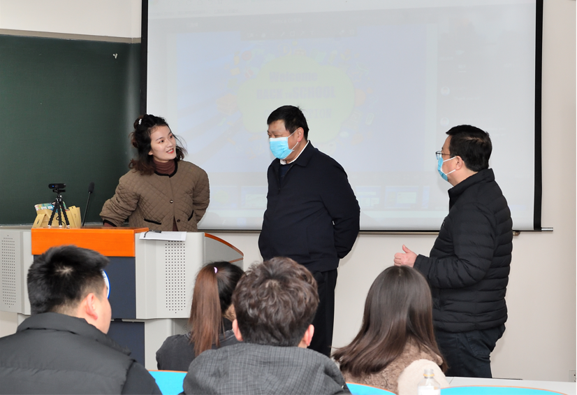 2月28日,2022年春季学期开学第一天,学校党委书记李旭锋、校长张卫国等分别带领六个检查组深入教学一线,开展新学期教学检查。