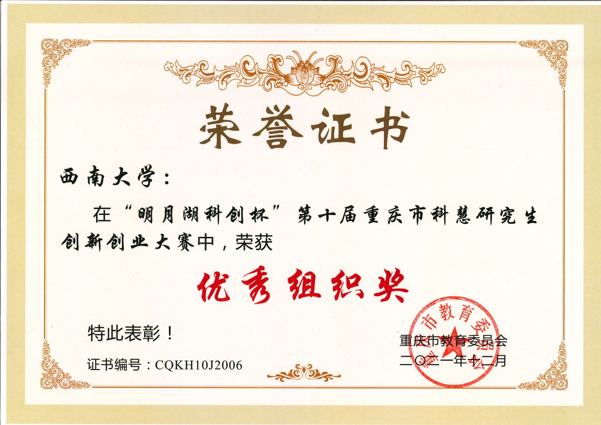 为培育研究生科研创新精神与创业实践能力,促进研究生创新创业,重庆市教育委员会2021年4月启动主办第十届重庆市科慧研究生创新创业大赛。研究生院积极组织在读研究生及已获得研究生录取资格的本科生参加比赛,学子们踊跃报名,积极应赛。