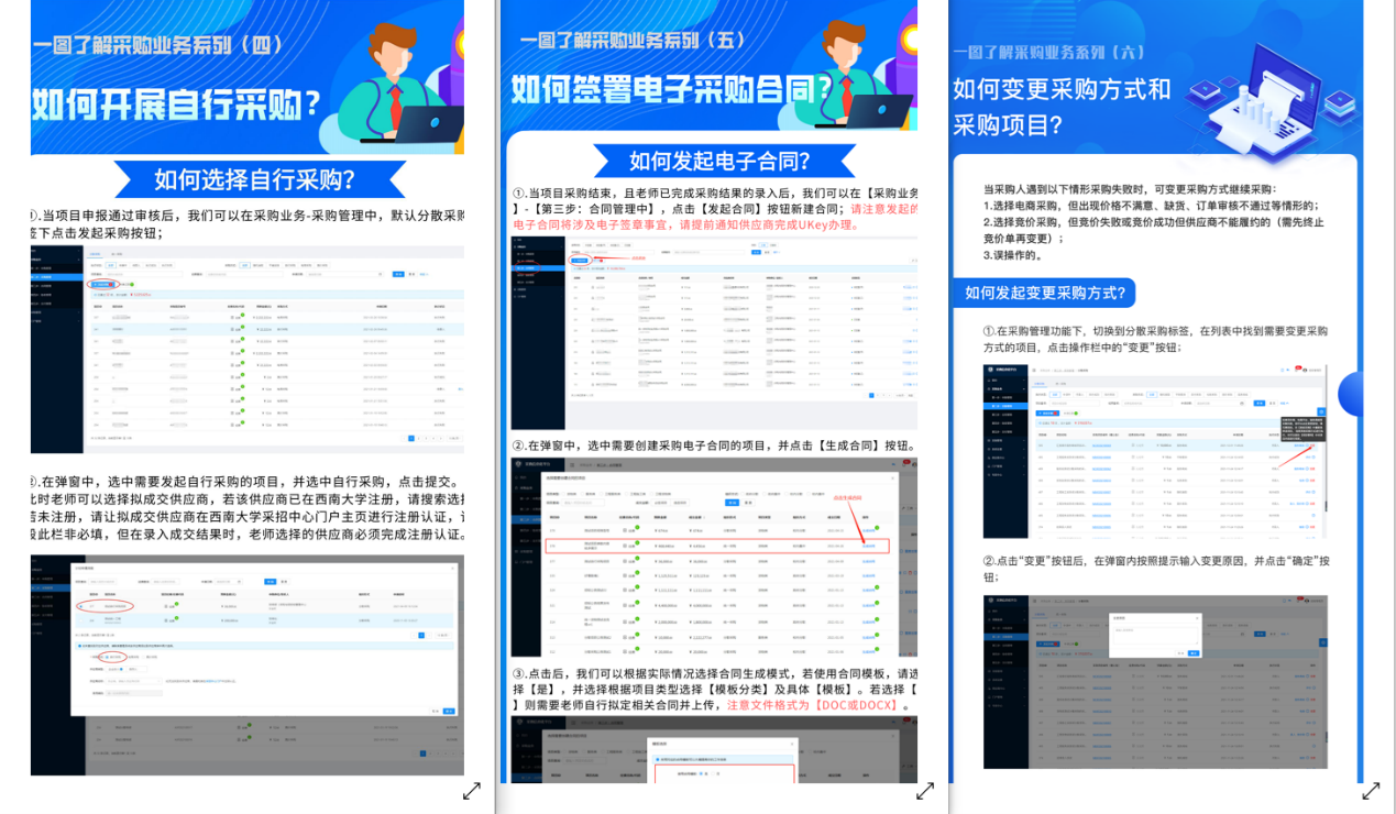 在国家“双一流”建设和深化政府采购制度改革的双重背景下, 2019年,beat365在线唯一官网登录提出了建设“采购业务一站式”的构想,并通过建设采购信息化平台,利用信息化手段,实现“让数据多跑路、让老师少跑腿”。为使老师能够顺畅地办理采购各项业务,中心重新梳理了采购业务流程,将采购各个阶段进行分解,制作了6期图文版《一图了解采购业务》,用系列图文的方式把对应的办事要点以直观的方式呈现出来。该图文系列指引简明扼要、图示清晰,老师们纷纷点赞。
