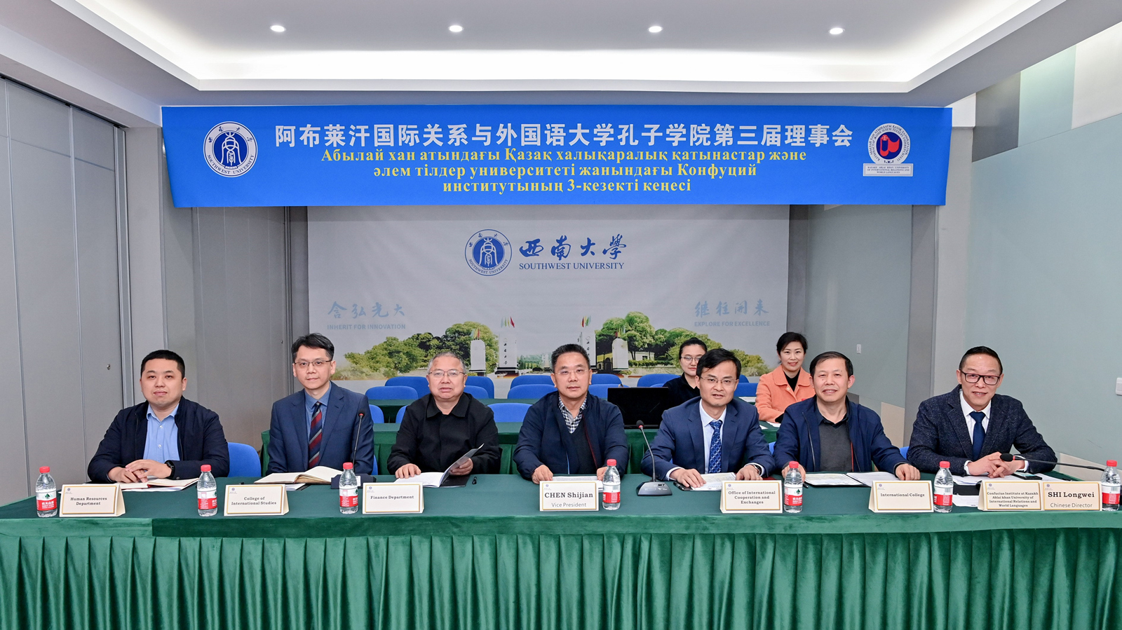 3月25日,学校共建阿布莱汗国际关系与外国语大学孔子学院第三届理事会在重庆和阿拉木图线上同步召开。副校长陈时见、阿布莱汗国际关系与外国语大学副校长阿赛丽·恰克莉科娃出席会议,学校国际合作与交流处、财务部、人力资源部、国际学院、外国语学院等中方理事会成员单位负责人及孔子学院中方院长参会。