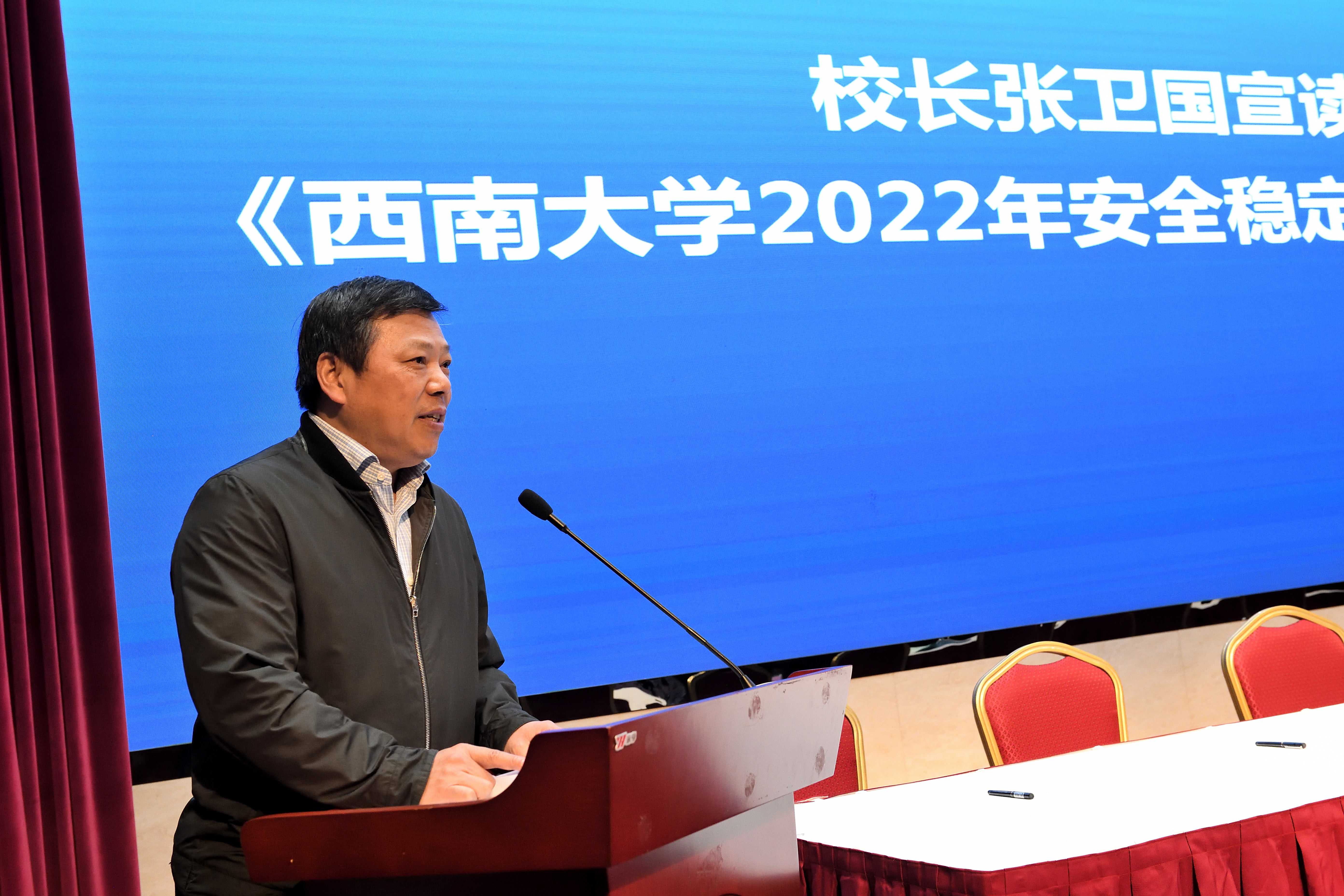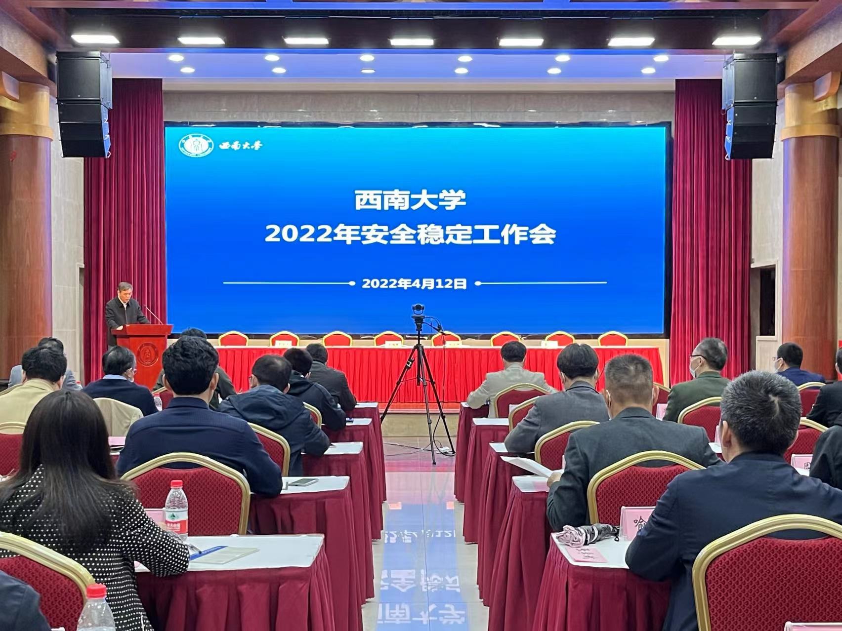 4月12日下午,学校线上线下同步召开2022年安全稳定工作会,在东方红会议厅设主会场,各单位会议室设分会场。学校党委书记李旭锋,校长张卫国,党委副书记潘洵,副校长赵国华、韩旭东出席会议。学校安全稳定工作领导小组成员单位、各学院(部)主要负责人在主会场参会,机关部门、直附属单位、企业单位及各学院(部、所、中心、校区)副处级以上干部及相关工作人员在分会场参会。会议由潘洵主持。