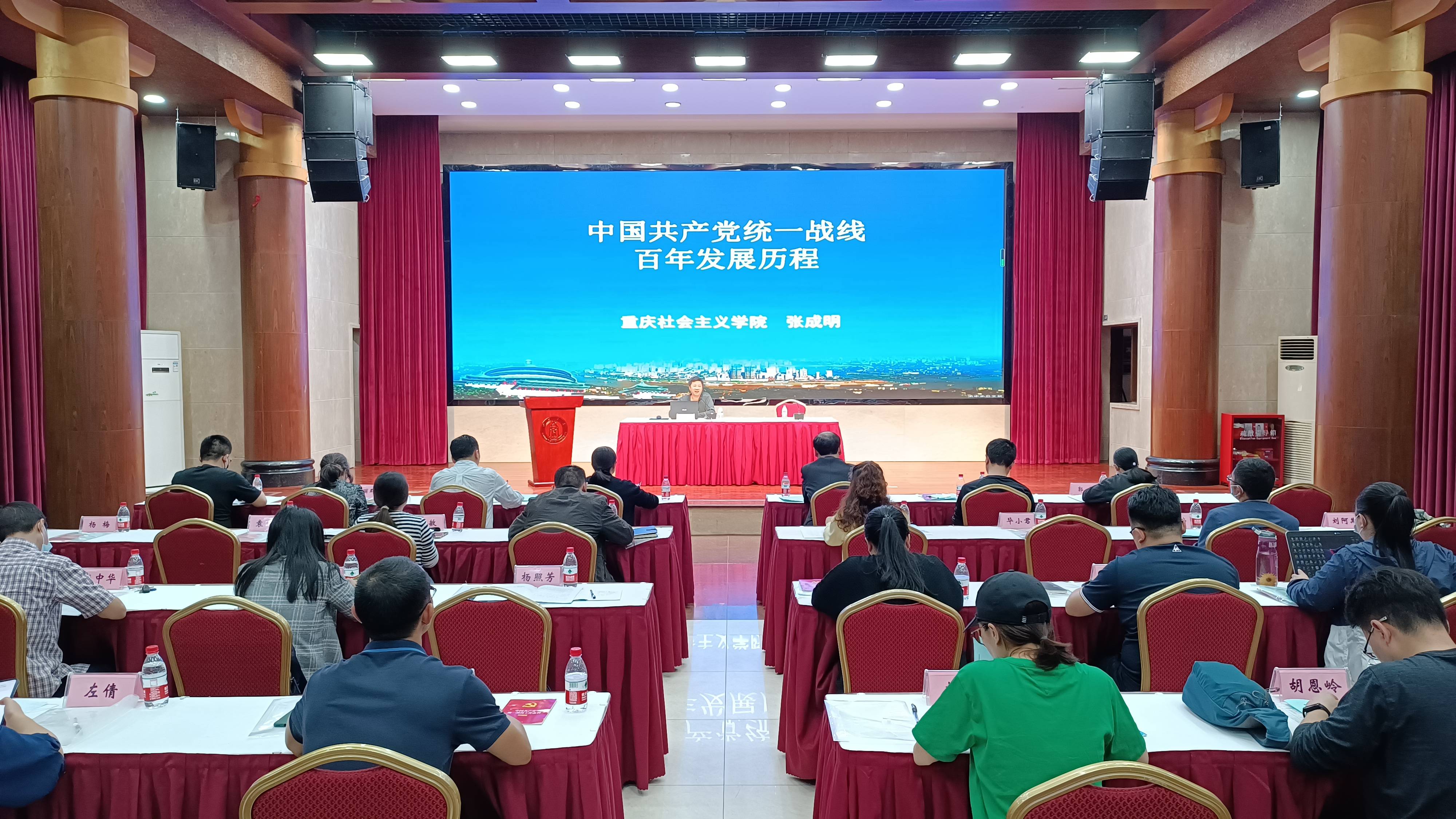 开班仪式结束后,重庆社会主义学院副教授张成明为学员们作“中国共产党统一战线百年发展历程”专题教学。