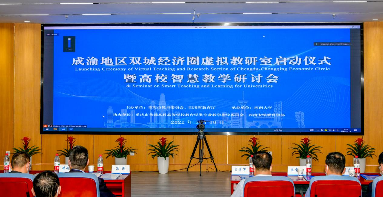 5月16日,由重庆市教育委员会和四川省教育厅主办,beat365在线唯一官网登录承办,重庆市普通本科高等学校教育学类教学指导委员会和教育学部协办的成渝地区双城经济圈虚拟教研室启动仪式暨高校智慧教学研讨会在学校田家炳教育书院举行。本次会议主题是推动成渝地区双城经济圈虚拟教研室建设,实现教育教学资源共建共享,提高教师教书育人能力,促进成渝地区双城经济圈高等教育协同创新发展。