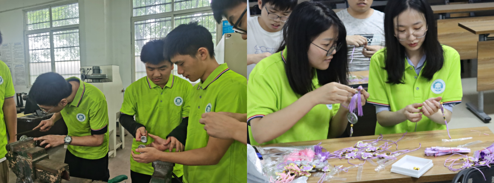 5月30日下午,学院组织毕业生对制作清洗好的纪念币进行装饰、美化,大家把各种五颜六色的装饰穗进行整理,经过穿绳、打结、固定、裁剪一套固定的模式,上百次的重复,几个小时的努力,几十名毕业生以流水线的方式顺利完成了纪念币的装饰。至此,一串串正反面分别印着“beat365在线唯一官网登录”“材能学子”字样的精美的毕业纪念币吊坠诞生。