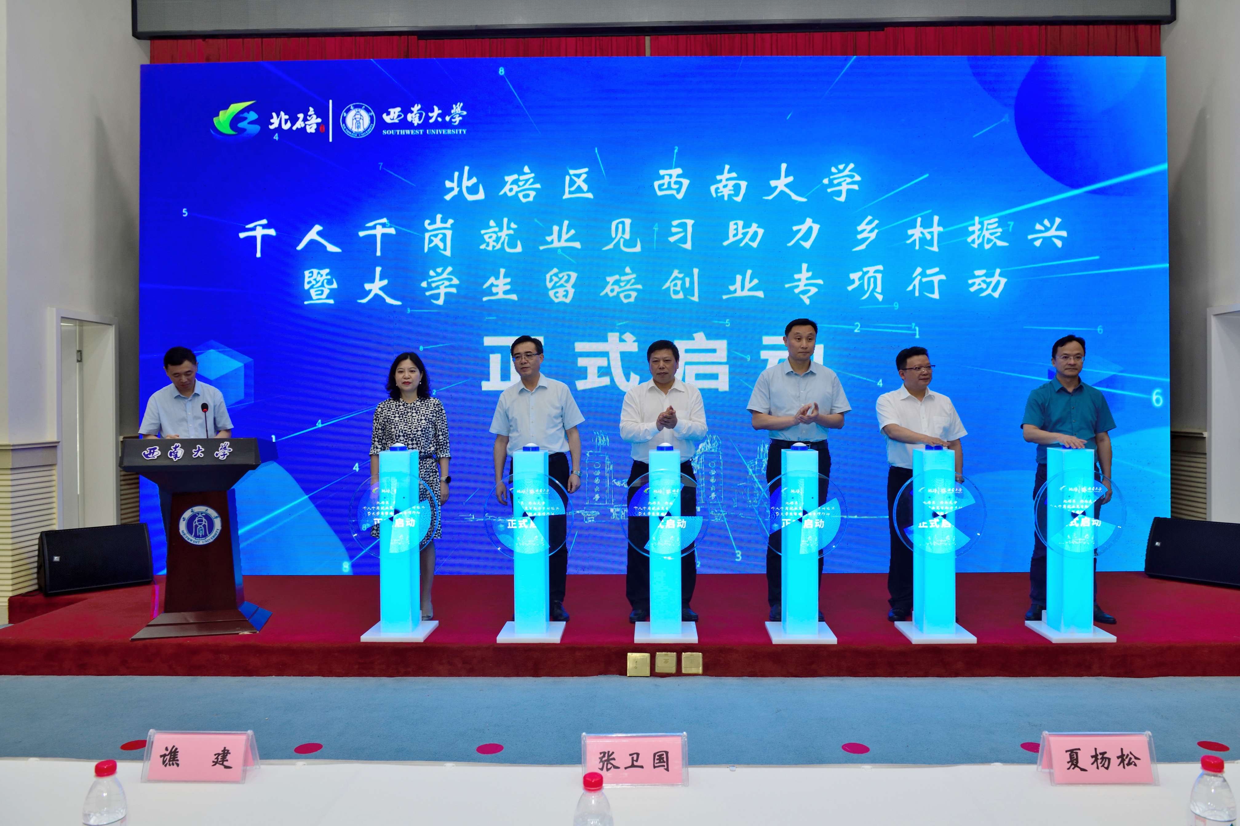 据了解,为深入贯彻落实习近平总书记关于“三农”工作、就业工作重要指示精神和党中央、国务院决策部署,以及重庆市委、市政府工作要求,今年4月,学校和北碚区人民政府深化合作,创新推动实施乡村振兴、就业优先战略,促进高校毕业生留碚就业创业,共同实施“千人千岗助力乡村振兴暨大学生留碚创业专项行动”。坚持“协同创新、系统推进、整合资源、注重实效”原则,学校发挥科教优势和人才优势,每年定期选派1000名大学生,深入基层一线开展“组团式”就业见习,全面提升就业和创业能力,高质量助力乡村振兴。北碚区在党政机关、企事业单位、镇街、园城管委会设置1000个就业见习岗位,科学设置项目,双方合作组织大学生开展2-6个月就业见习,促进学校毕业生留碚就业创业,为北碚经济社会发展提供人才动能和创新动能。