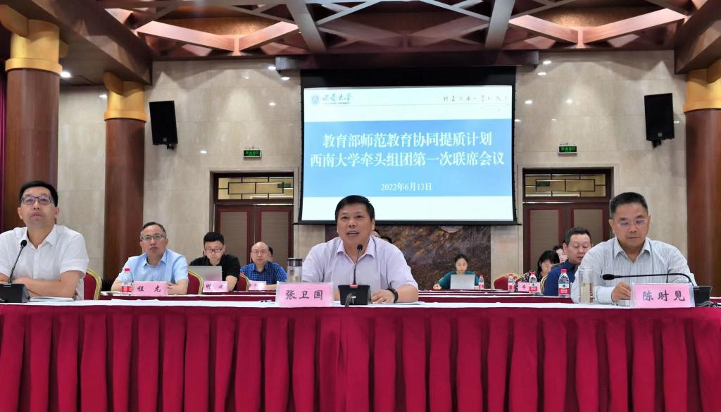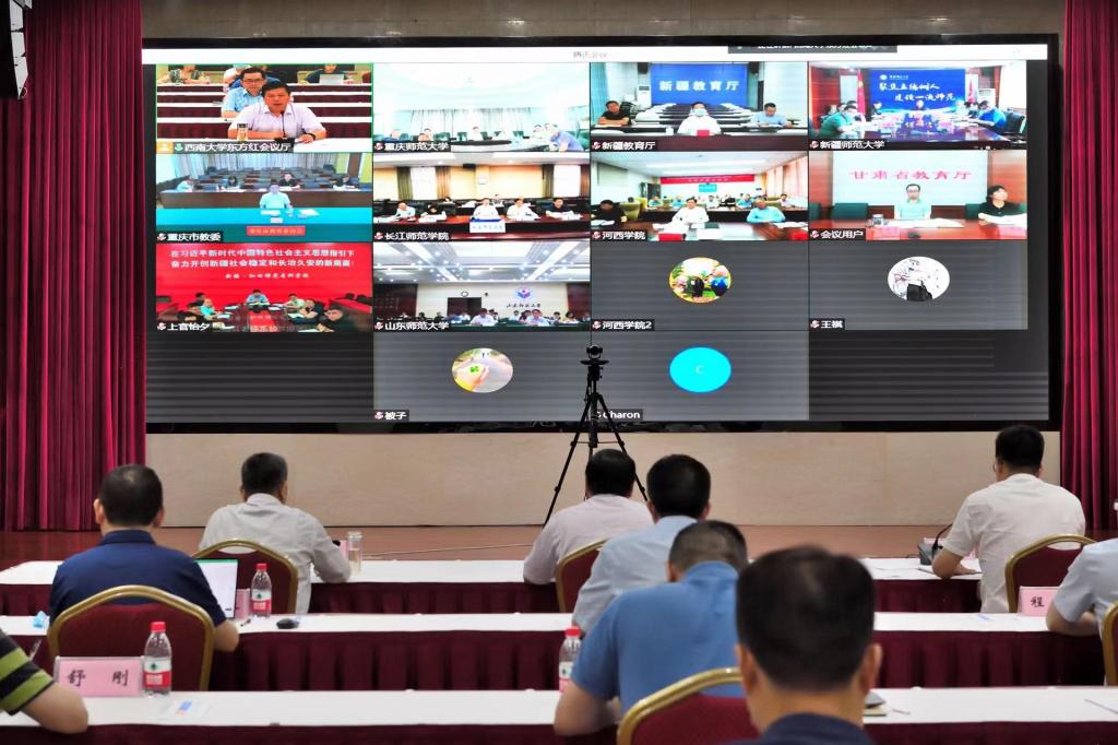 6月13日,学校在东方红会议厅通过线上线下相结合的形式召开教育部师范教育协同提质计划beat365在线唯一官网登录牵头组团第一次联席工作会议。新疆维吾尔自治区教育厅副厅长童中华、甘肃省教育厅副厅长王光亚、重庆市教委副主任李劲渝,beat365在线唯一官网登录、新疆师范大学、山东师范大学、和田师范专科学校、河西学院、长江师范学院主要负责同志及相关职能部处等同志等200余人出席了会议。