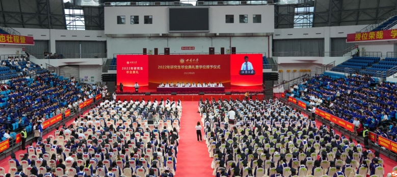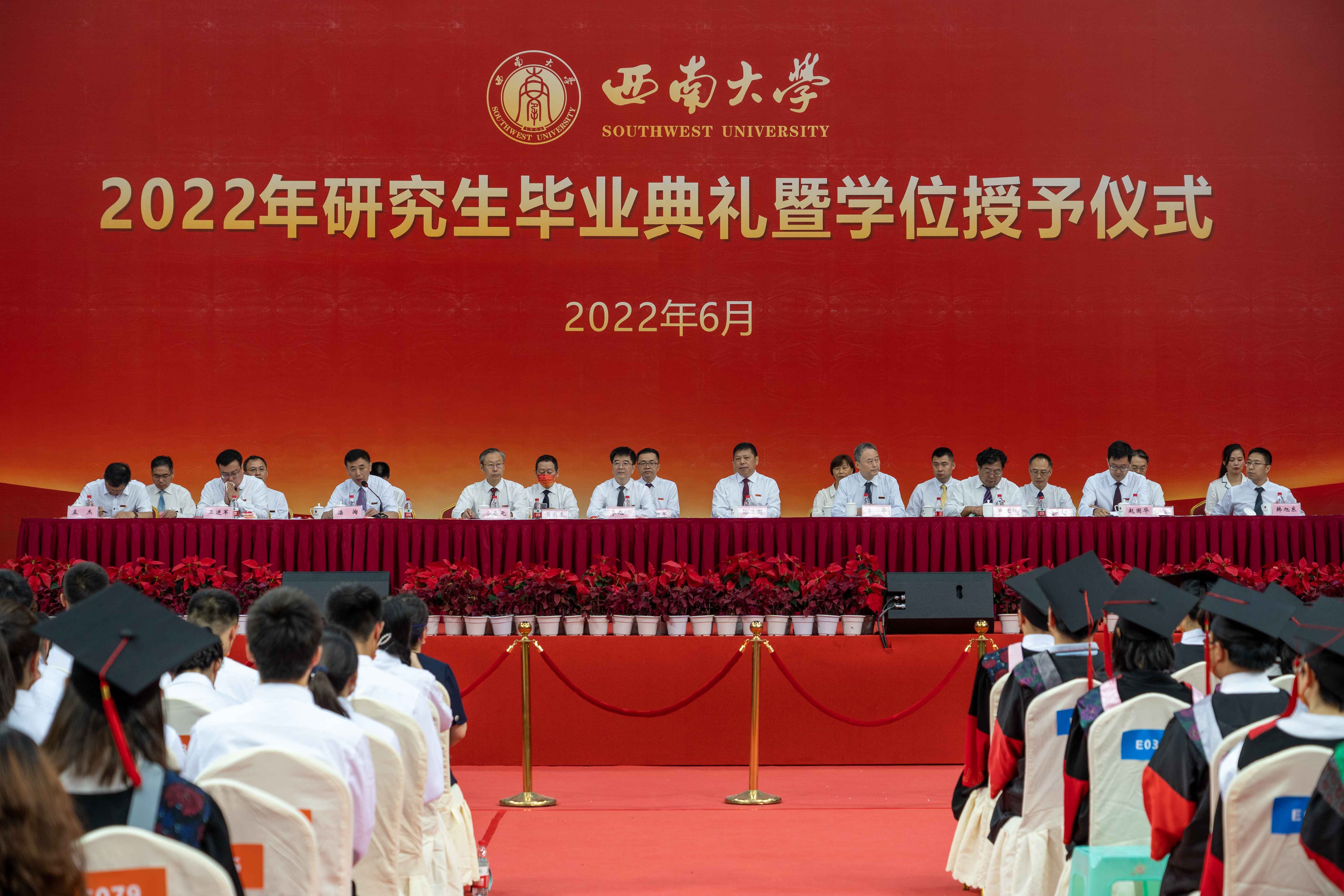 全体在校校领导、党委常委,校学位评定委员会委员,校学生工作领导小组成员单位主要负责人,校友代表,各研究生培养单位负责人,毕业研究生指导教师、辅导员、教学秘书,2022届在校毕业研究生在现场共同见证了这一难忘时刻。未在校毕业研究生、家长、校友及关心学校发展的网友有近10万人次通过在线直播“云上观礼”。毕业典礼由学校党委副书记潘洵主持,授位仪式由学校副校长王进军主持。