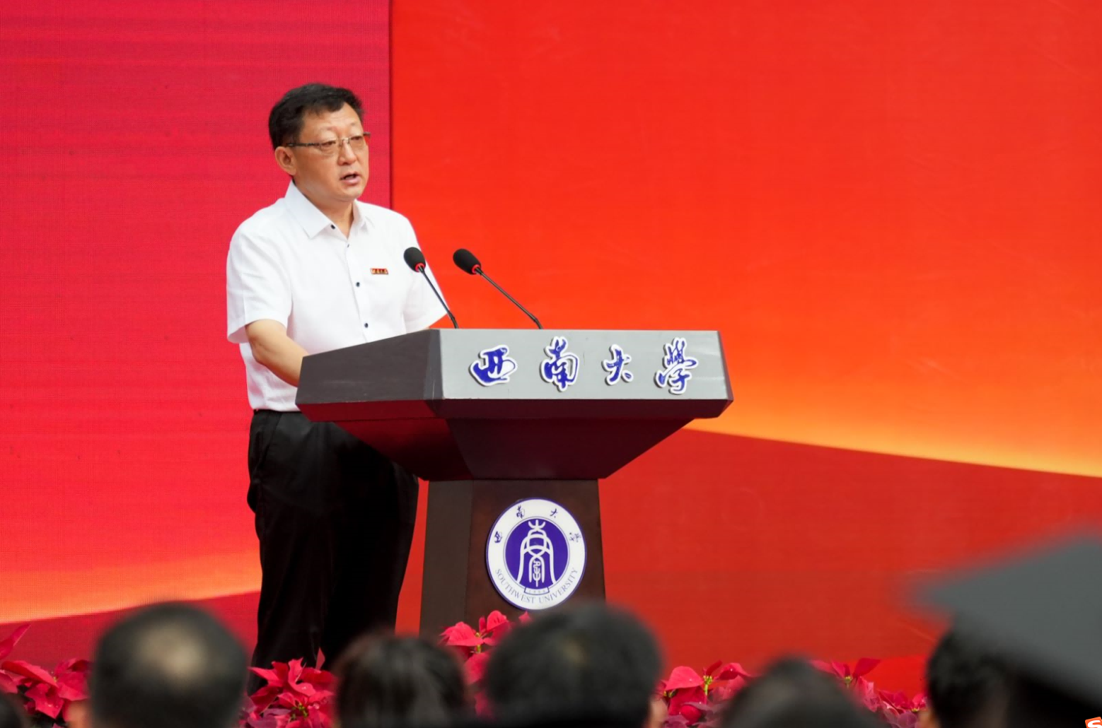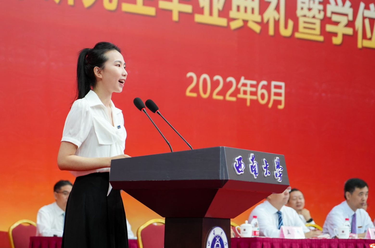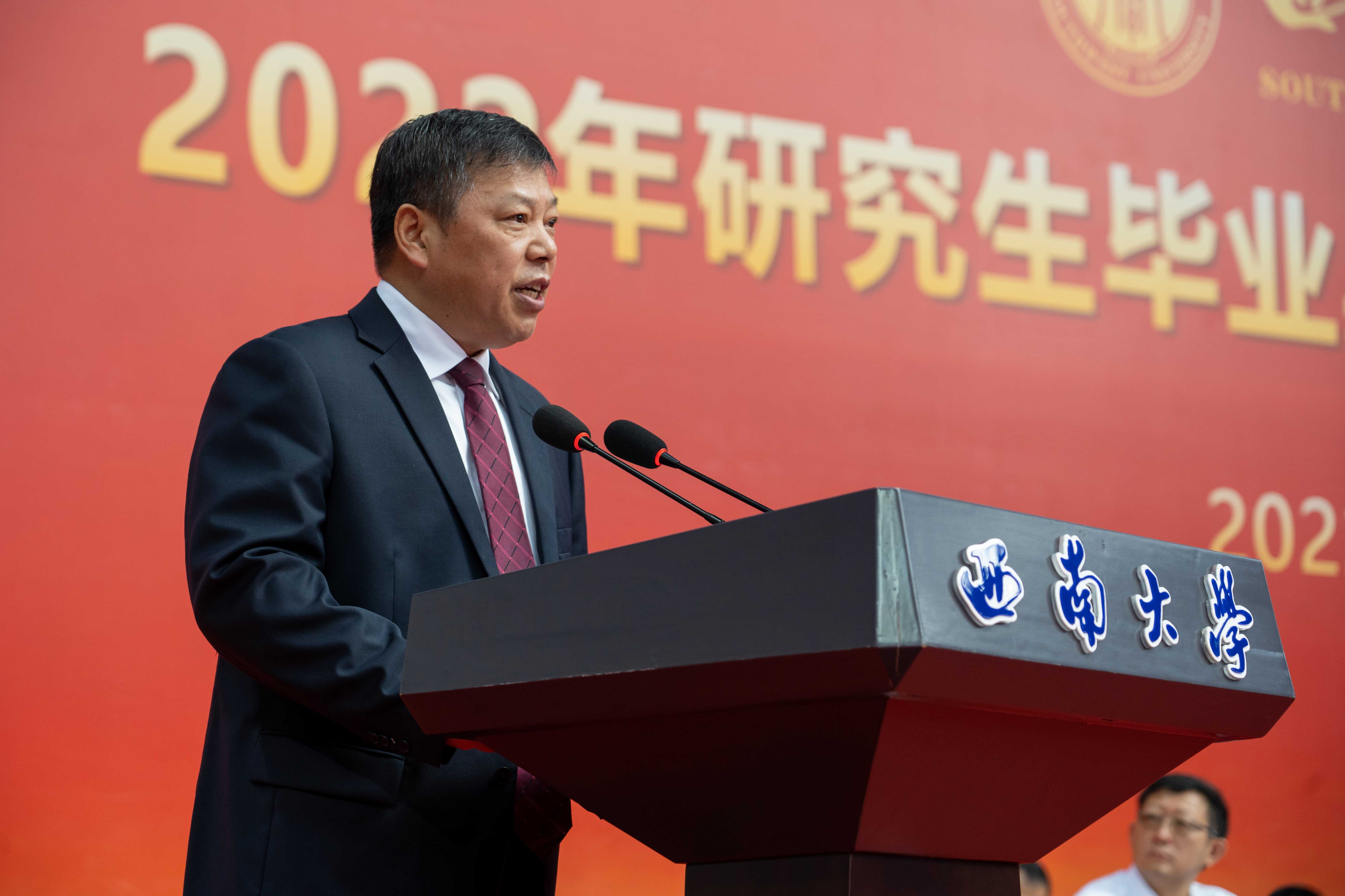 毕业研究生代表、央视点赞的“油菜花女孩”、农学与生物科技学院硕士研究生万媛媛同学把自己比作一粒种子,在三年时光里,努力生根发芽,向阳生长,终获硕果累累,并呼吁全体毕业研究生立志做一粒好种子,乘着含弘光大的东风飞到全国各地,继续生根发芽,开花结果;研究生指导教师代表、国家级人才称号获得者、教育部课程思政教学名师、马克思主义学院周琪教授希望同学们在大德、明德的轨道上,做社会主义核心价值观的坚定信仰者、积极传播者、模范践行者,努力做到守正、笃行和创新,实现爱国心与报国志的融合;校友代表、物理科学与技术学院1988届硕士研究生,国家级人才称号获得者、北京大学孟杰教授回顾了自己在西大求学的青春岁月,分享了自己的工作经历和人生体会,鼓励即将毕业的师弟师妹们坚持不懈努力奋斗、持续不断认真学习,成就自己的高光时刻。
