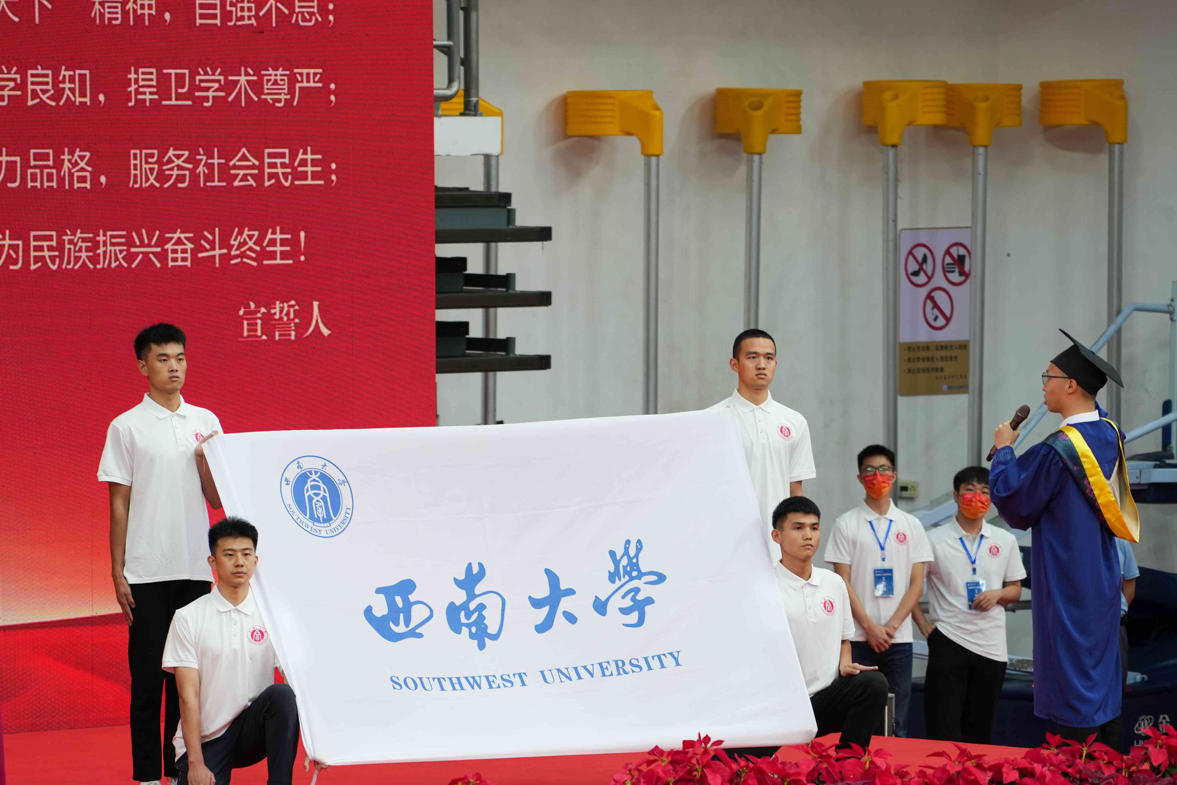 典礼在庄严的国歌声中拉开帷幕。党委书记李旭锋代表学校宣读研究生毕业、授位和表彰决定。根据学校有关学籍管理规定,经学校审核、研究决定:准予257名博士研究生、4444名硕士研究生、12名来华留学博士研究生、34名来华留学硕士研究生毕业。根据重庆市和学校有关表彰办法,经评审,100名研究生被评为“重庆市普通高校优秀毕业研究生”,534名研究生被评为“beat365在线唯一官网登录2022年优秀毕业研究生”,20名来华留学研究生被评为“beat365在线唯一官网登录2022年优秀来华留学毕业研究生”,171名研究生撰写的学位论文被评为2022年校级优秀学位论文。经学校学位评定委员会全体委员会议审核,决定授予217名研究生博士学位,授予4455名研究生硕士学位,授予11名来华留学研究生博士学位,授予34名来华留学研究生硕士学位。