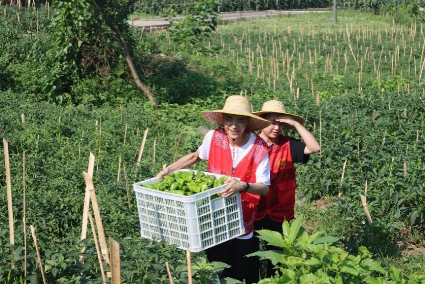 7月5日上午,历史文化学院民族学院暑期“三下乡”社会实践服务团来到北碚区天府镇中心村,开展为期5天的劳动助农志愿服务。早上8点,志愿者们到达天府镇中心村祠堂农场,在村干部的指导下,开始采摘青椒。