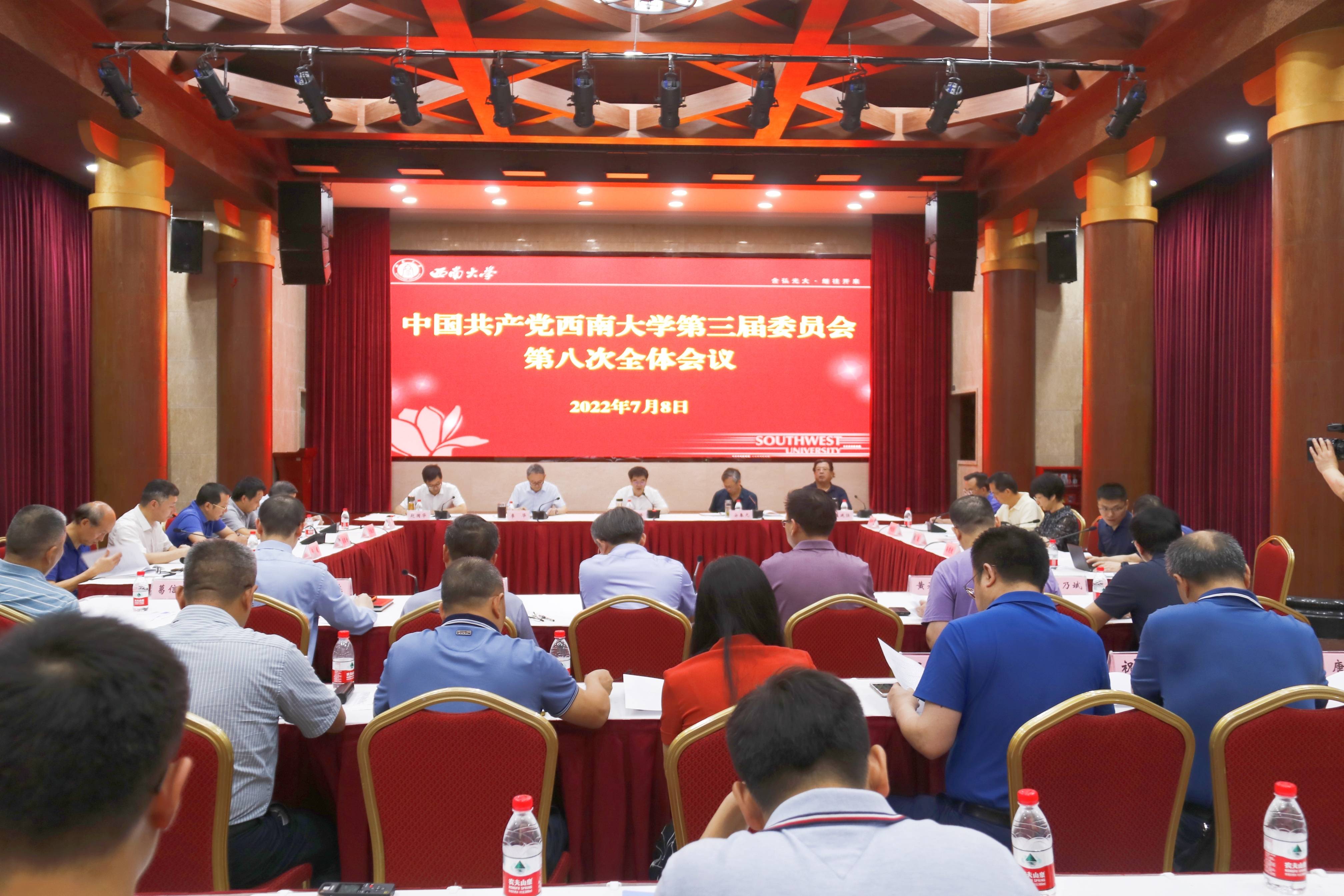7月8日上午,学校在东方红会议厅召开中国共产党beat365在线唯一官网登录第三届委员会第八次全体会议,会议审议通过学校党委书记李旭锋作的《踔厉奋发笃行不怠以优异成绩迎接党的二十大胜利召开》党委常委会2022年春季学期工作报告,并就秋季学期工作计划进行讨论。会议由李旭锋主持,全体党委委员出席会议,纪委委员列席会议。