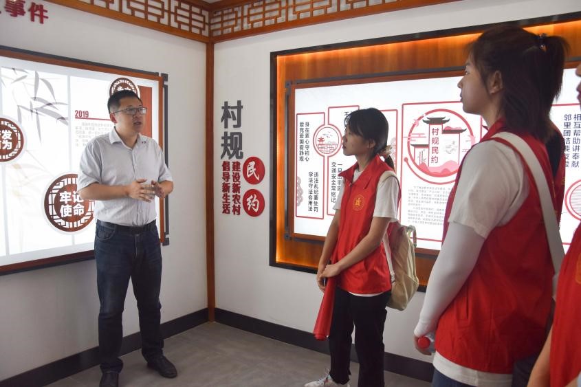 “三下乡”社会实践活动的第一站,“乡约今夏”社会实践团来到了北碚区静观镇素心村。“静观镇被誉为中国花木之乡,而素心村则以上千亩素心蜡梅远近闻名。围绕特色优势主导产业—花木,素心村构建了‘一园一带一区两院落三项目’的格局,发展村集体经济与特色乡村旅游产业。“我们拥有重庆市首个乡村民法典学习馆,让法律意识深入村民内心。”在介绍素心村发展现状时,素心村驻村第一书记自豪地向实践团介绍道。