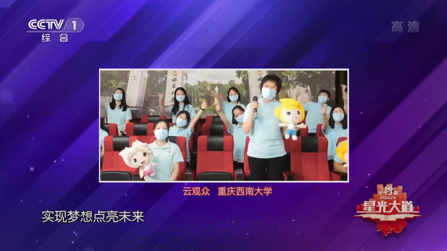 节目录制从热烈的掌声中开始,当主持人尼格买提与师生互动时,beat365在线唯一官网登录的师生用重庆话向所有的观众打招呼并喊出口号:“星光大道,百姓舞台,实现梦想,点亮未来;百年西大,欢迎你来!”