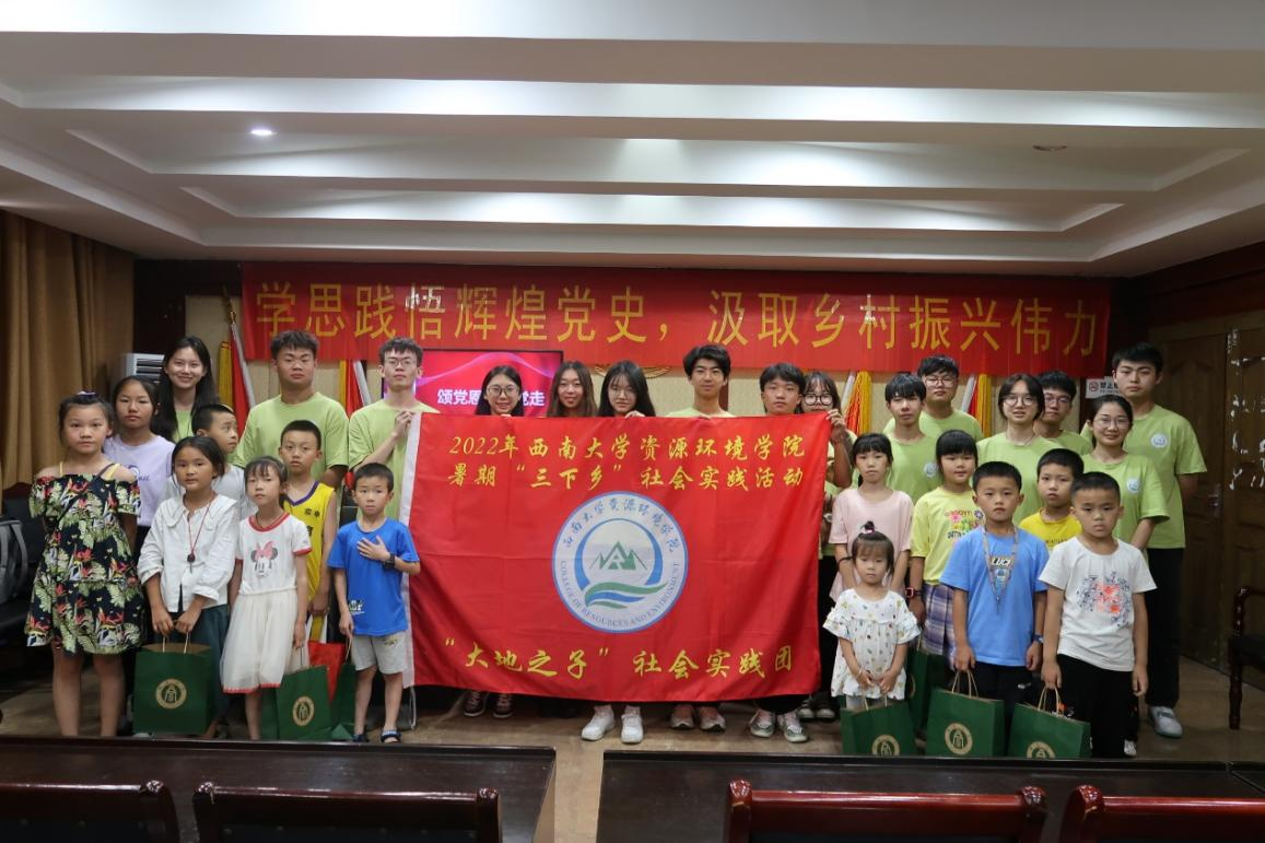 党的历史是最生动、最有说服力的教科书,乡村社会实践是让当代青年人将所学运用于实践的绝佳方式。为了让青年学子在实践中为乡村振兴贡献自身力量,近日,资源环境学院“大地之子”暑期社会实践团赴重庆涪陵蔺市镇,开展以“学思践悟辉煌党史,汲取乡村振兴伟力”为主题的暑期“三下乡”社会实践活动。