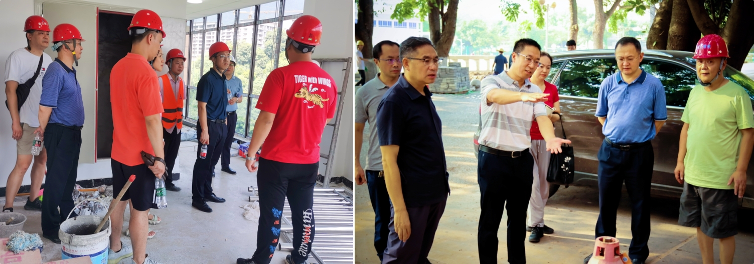 8月3日,韩旭东一行到橘园七舍、竹园洗消车间、文化村10、11舍等施工现场检查调研,了解项目进展情况,查看施工建设细节。4日,韩旭东一行先后检查了桃园六舍、竹园B栋等维修改造现场,第四运动场、文学院、北区图书馆周边的人行道及环境整治维修现场,听取相关负责人对施工管理、消防安全、疫情防控等情况的汇报,实地了解施工进展,协调解决问题困难。