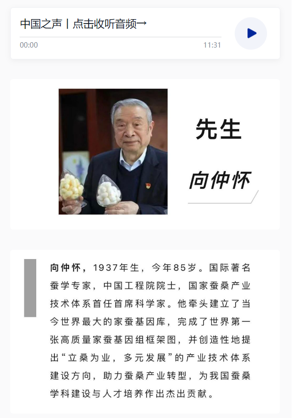 要让“遍身罗绮者,也是养蚕人”——85岁的向仲怀,从怀里捧出揣了七十个春秋的梦想,温热依旧。