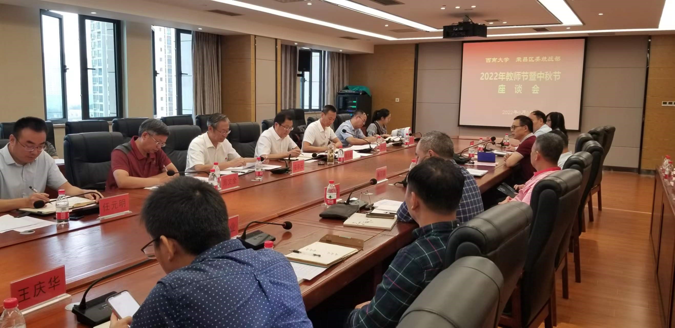 9月9日,荣昌区委常委、区委统战部部长覃兴建一行到荣昌校区调研统战工作并看望慰问党外代表人士。学校党委副书记、党委统战部部长安春元出席座谈会。
