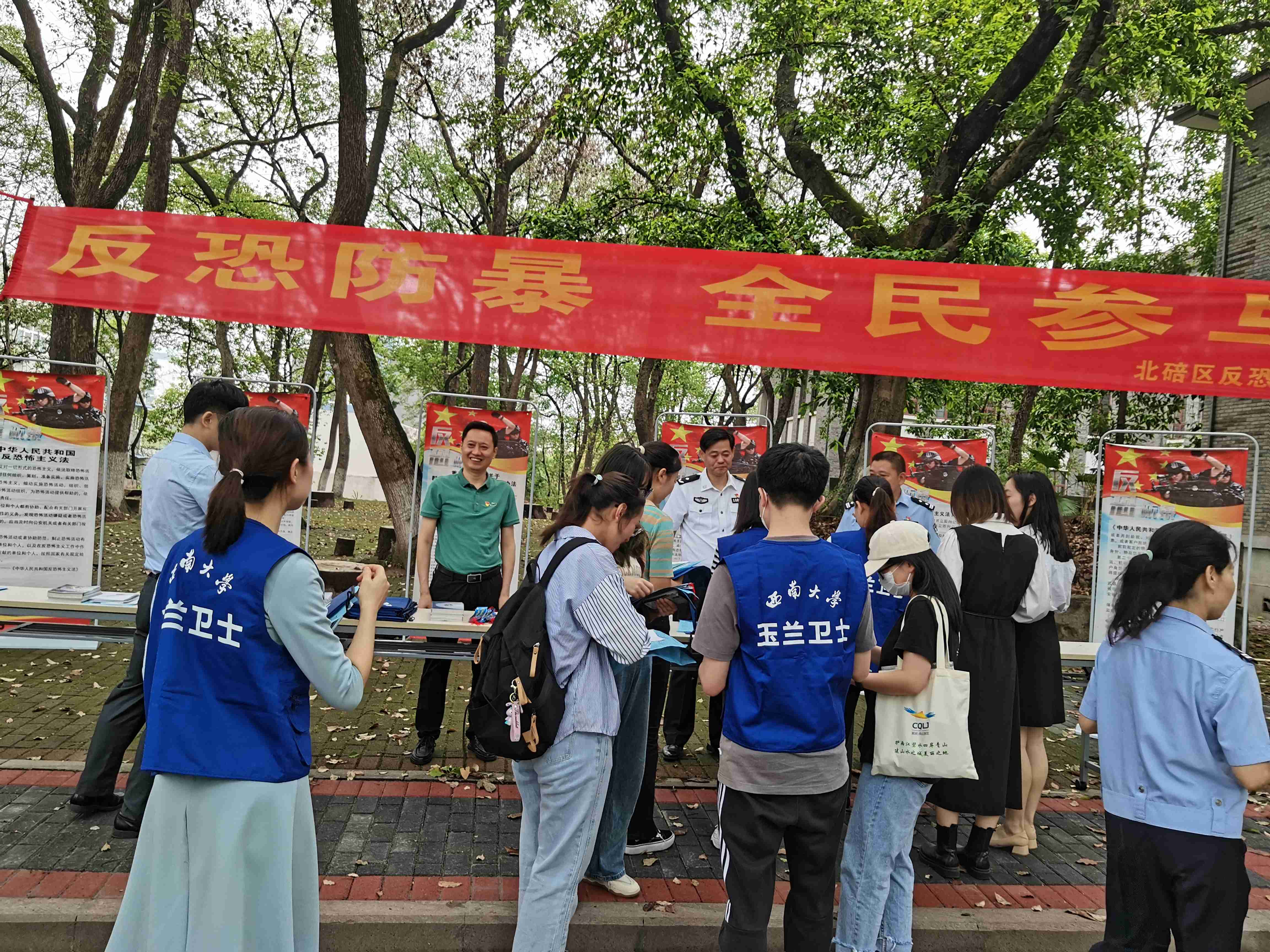 按照国家反恐办《关于开展“反恐宣传进高校”活动的通知》要求,9月15日上午,学校联合北碚区公安分局组织开展了以“反恐防暴 全民参与”为主题的反恐宣传教育活动。北碚区公安分局,学校党委学工部、保卫部等单位负责人及玉兰卫士班学生参与活动。