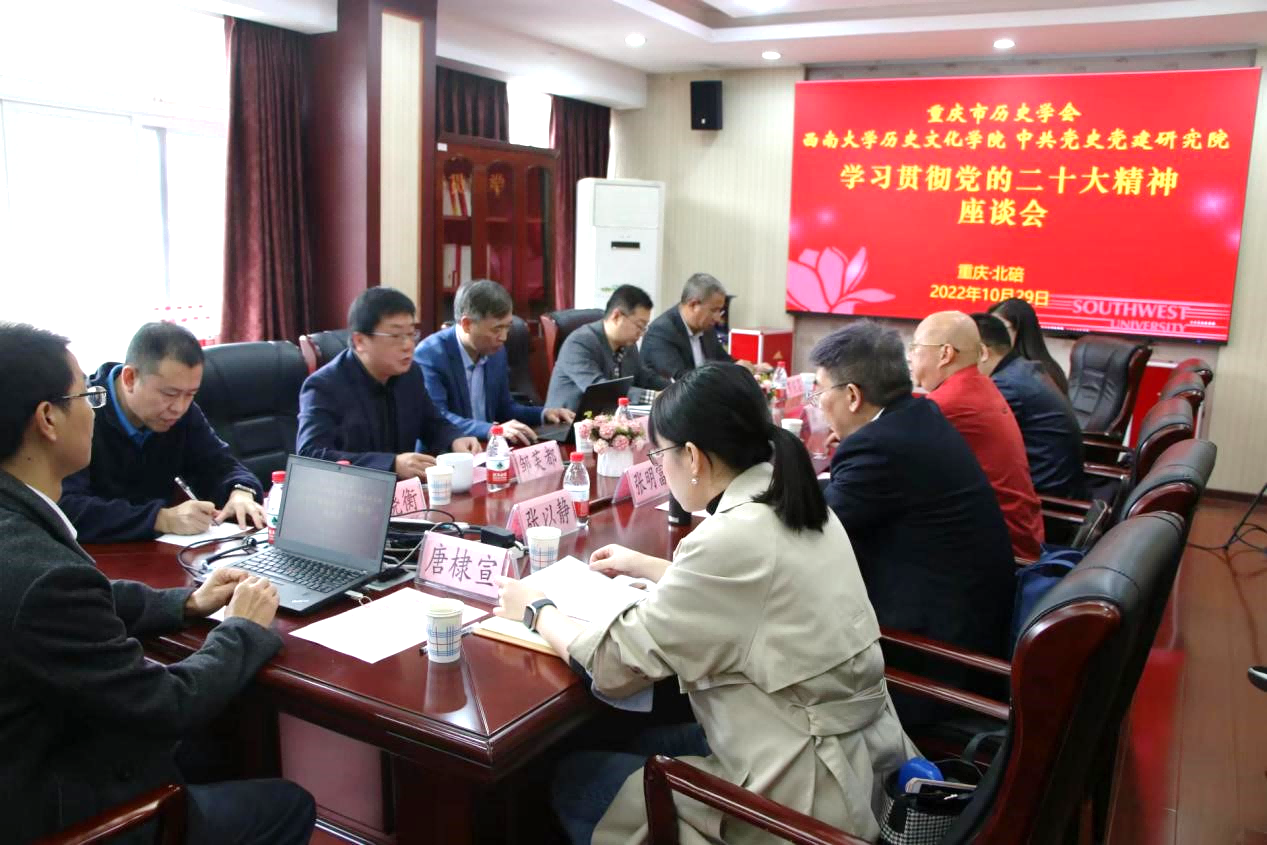 为深入学习贯彻党的二十大精神,全面贯彻习近平新时代中国特色社会主义思想,推动史学研究在新时代续写新华章,10月29日下午,重庆市历史学会、学校历史文化学院 民族学院、中共党史党建研究院联合举办学习贯彻党的二十大精神座谈会。