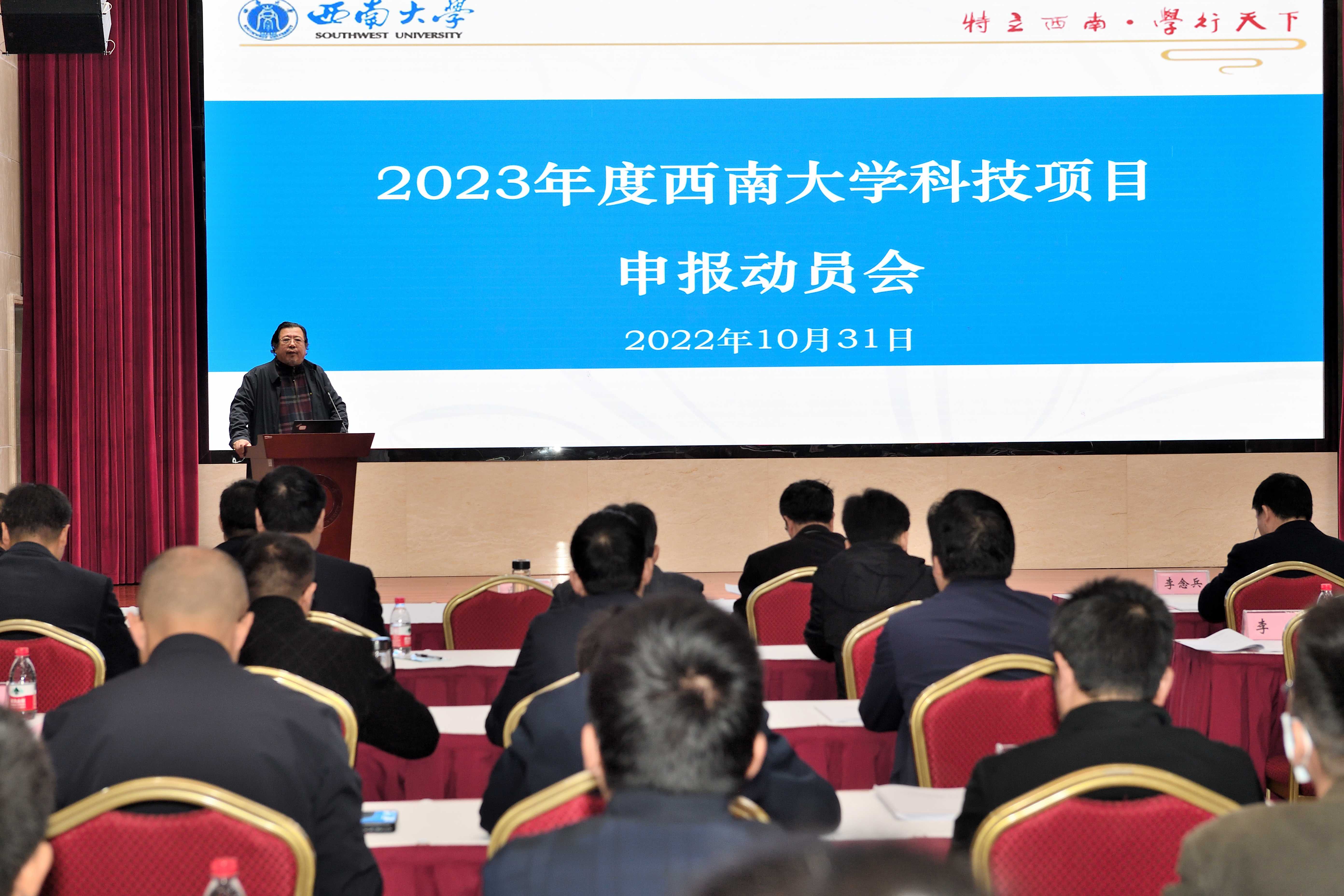 10月31日上午,学校在东方红会议厅召开2023年度beat365在线唯一官网登录科技项目申报动员大会。重庆市科学技术局副局长许志鹏,学校党委书记李旭锋,副校长崔延强出席会议,学校二级教学科研单位主要负责人、分管领导,校管独立科研机构负责人,自然科学类各科研基地负责人,科学技术处相关人员参加会议。