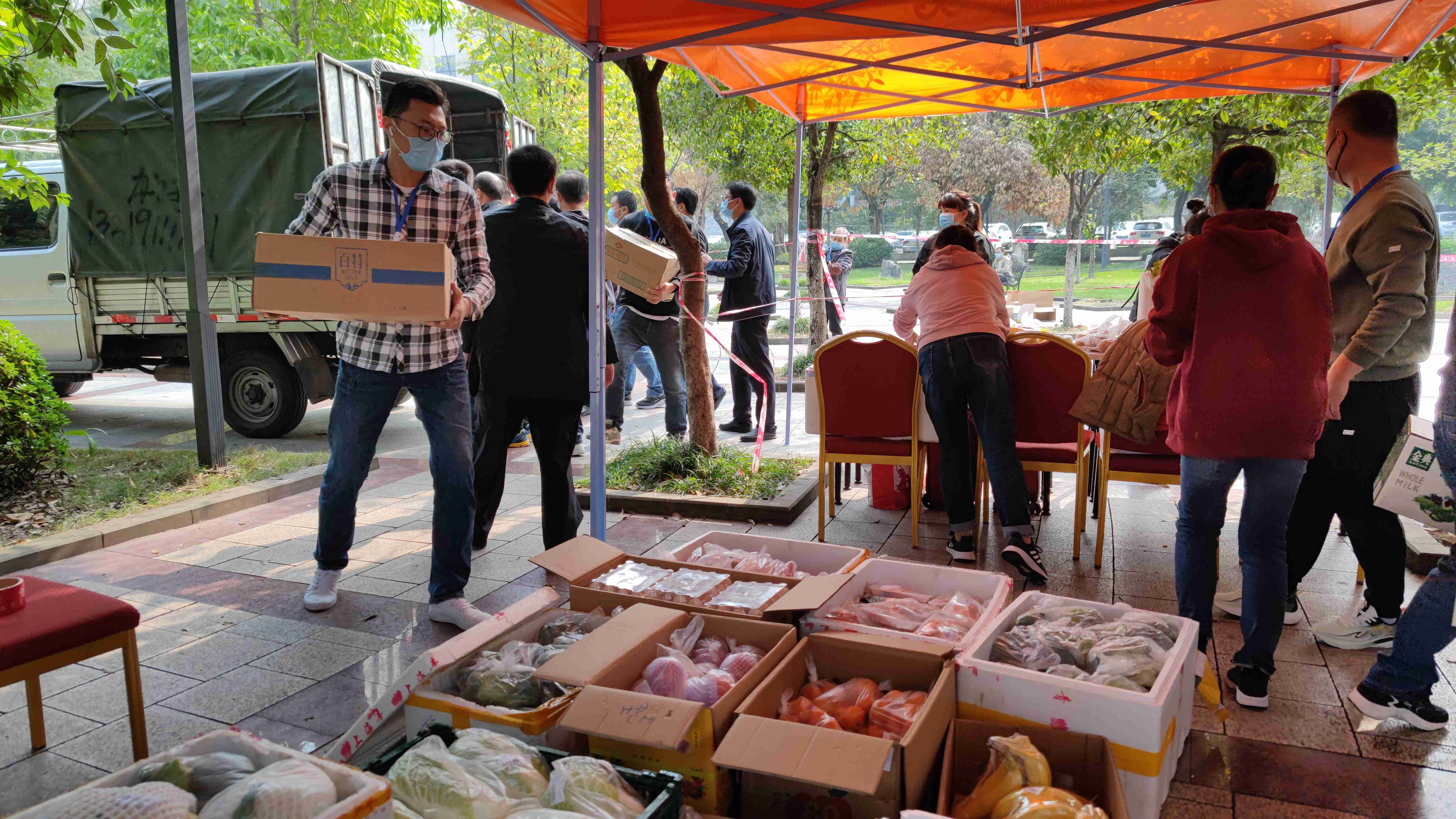 后勤保障部牵头进行连夜紧急筹备,9日上午10时,居民区保供点在逸心广场准时开卖,现场为居民提供了大量米面油、肉蛋奶、蔬菜、水果、调味品、洗涤用品等。两个小时内200余人陆续前来购物,居民们对学校及时帮助他们解决生活困难连连称赞。多位校领导先后到现场了解情况,听取居民意见,对进一步做好师生生活物资保供工作提出明确要求。相关部门负责人一直在现场协调指挥,20余名志愿者全程协助公司人员搬运和售卖物品。