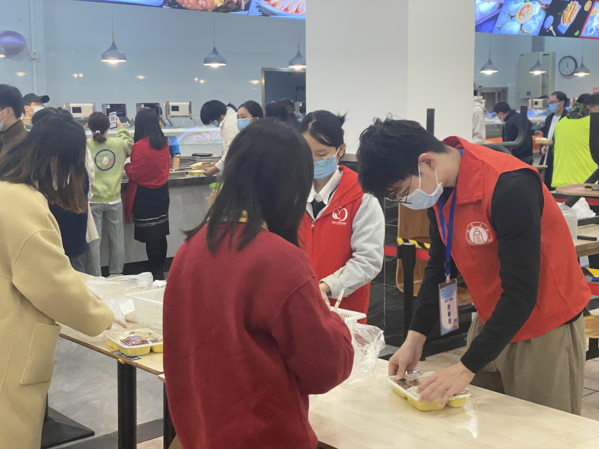 校内学生党员们也积极投身校园抗疫志愿服务,园区楼栋、食堂、物资发放点、校内超市到处闪耀他们的青春风采与党员担当。