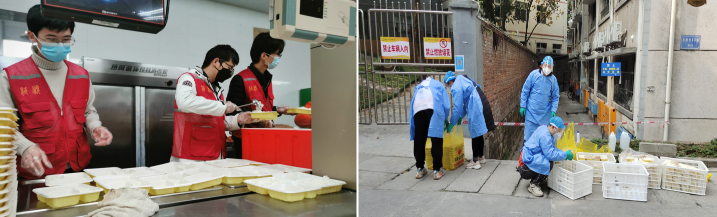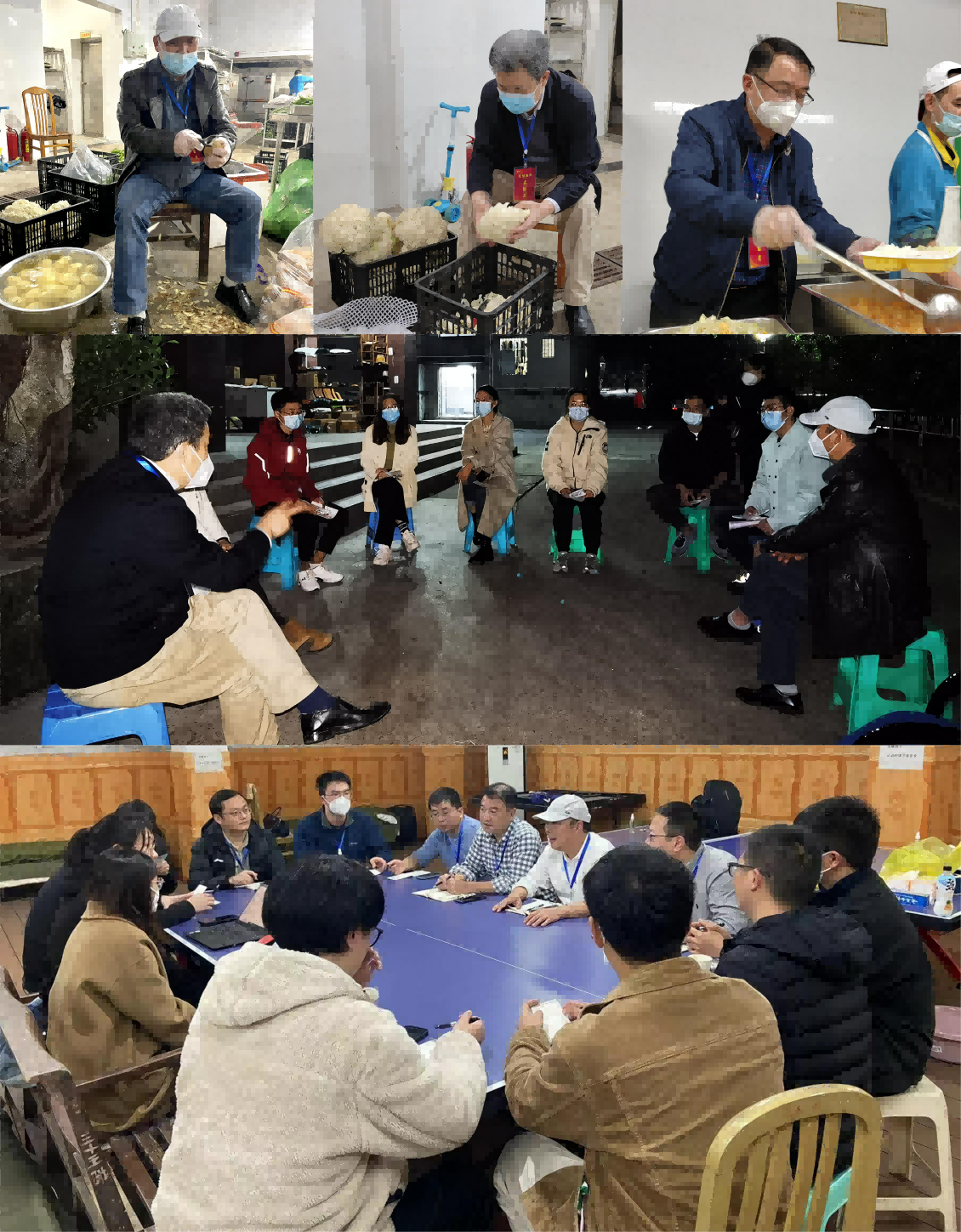 11月22日晚,接北碚区防控指挥部通知,黄树村研究生公寓所处的beat365在线唯一官网登录南社区因发现5例阳性感染者而实行封控管理。为阻止社区疫情蔓延危及研究生公寓,工作组请求学校同意,在学校疫情防控第九片区负责人、副校长王进军的领导下,由植物保护学院党政领导与研究生工作部派驻领导统筹协调,紧急召集六个主要培养单位共计22位教工志愿者组成特别工作组。次日早上7点,特别工作组成员迅速集结,毅然逆行入驻封控片区,与片区同学们、宿管员、厨工师傅一起同吃同住同战斗,坚持做好保供物资、转运患者、消杀环境、流调排查、送餐到寝、送药上门、处理垃圾等工作。期间,“关键少数”领导干部作为团队的主心骨、师生的贴心人,坚持下沉一线,带领专家教授、青年教工,夜以继日,不顾疲劳,忘我工作,团结奋斗,合力抗疫。志愿者中有党员也有群众,有的放弃新婚蜜月主动请缨,有的不顾嗷嗷待抚的孩子毅然前行,还有的带伤带病依然坚持;工作组同志们把社区当战场,负重奔波忙碌不停;把工作驻地当寝室,困了睡行军床甚至睡地板上;把寝室当教室和会议室,坚持防疫工作和线上教学科研两手抓两不误,坚持每晚睡前召开总结会,集思广益研究抗疫,及时优化防疫方案,改进具体工作措施。
