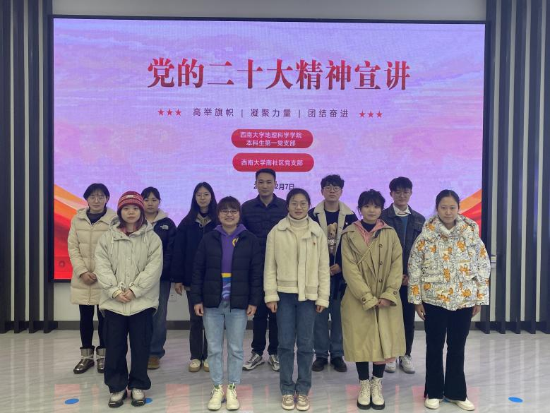 自1月13日以来,宣讲团历时37天,在11个社区、3所学校、3个村委会和2个企业单位陆续开展宣讲19场,覆盖受众450余人。宣讲内容丰富,重点突出,既有政治高度、思想深度,又有理论温度、实践厚度,让党的创新理论“飞入了寻常百姓家”。下一步,地科科学学院党委将继续全面深入学习宣传贯彻党的二十大精神,强组织、搭平台、聚合力、增效能,学用结合、知行合一,真正把学习贯彻党的二十大精神转化为奋进新征程、建功新时代的强大动力。
