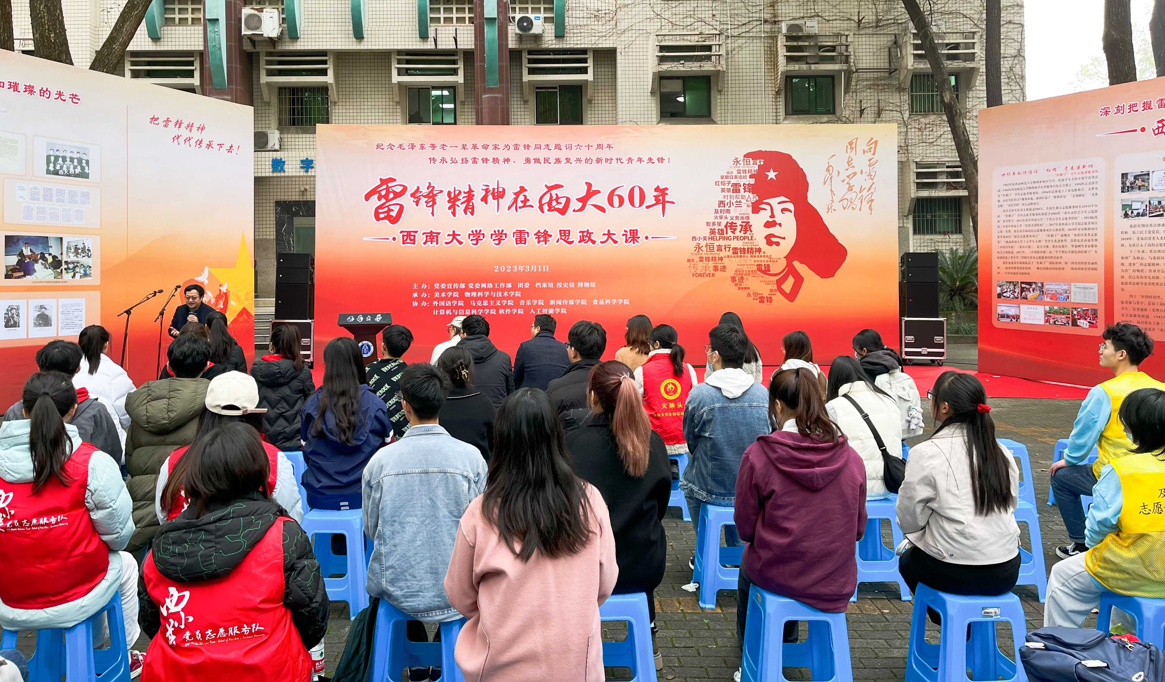 当天,“雷锋精神在西大60年”思政大课在北区樟树林同步进行,学校师生把思政课堂搬到教室外,让志愿服务师生变身思政教师,为全校学子上了一堂生动的主题教育课。