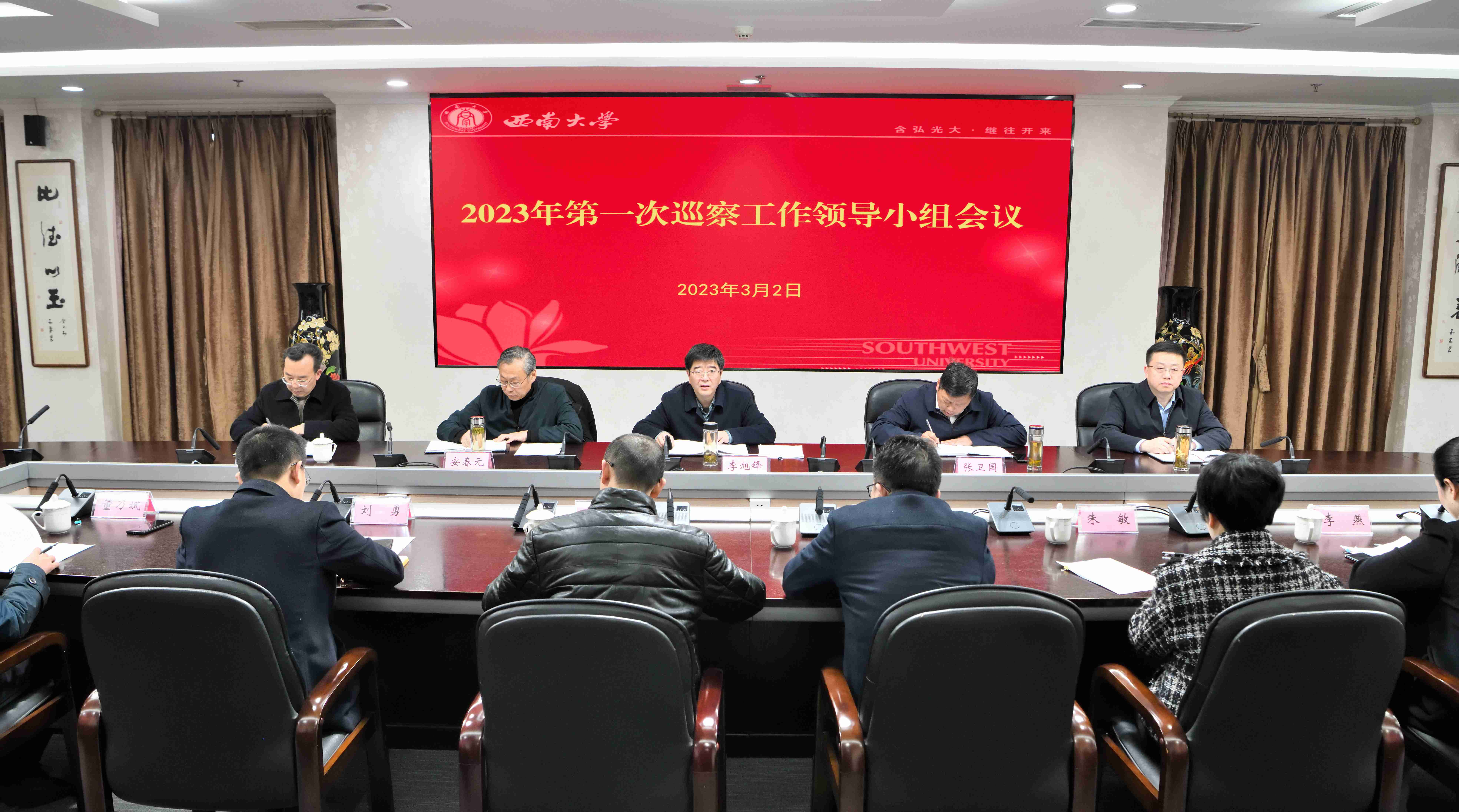 3月2日上午,学校党委召开2023年第一次巡察工作领导小组会议,研究部署第十轮校内巡察工作。学校党委书记、巡察工作领导小组组长李旭锋主持会议,校长、巡察工作领导小组组长张卫国,党委副书记、巡察工作领导小组副组长安春元,党委副书记、纪委书记、巡察工作领导小组副组长夏玉峰,党委常委、党委组织部部长李荣华出席会议,巡察工作领导小组全体成员单位主要负责同志参加会议。