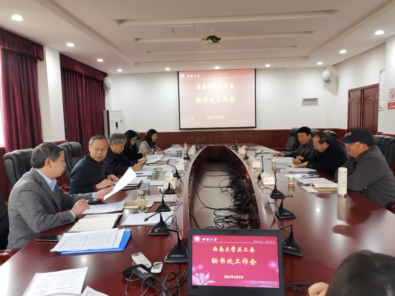 4月6日下午,学校关工委召开新学期秘书处工作会,学校党委副书记、关工委副主任兼秘书长安春元,关工委常务副主任宋乃庆以及全体秘书处成员参加会议。