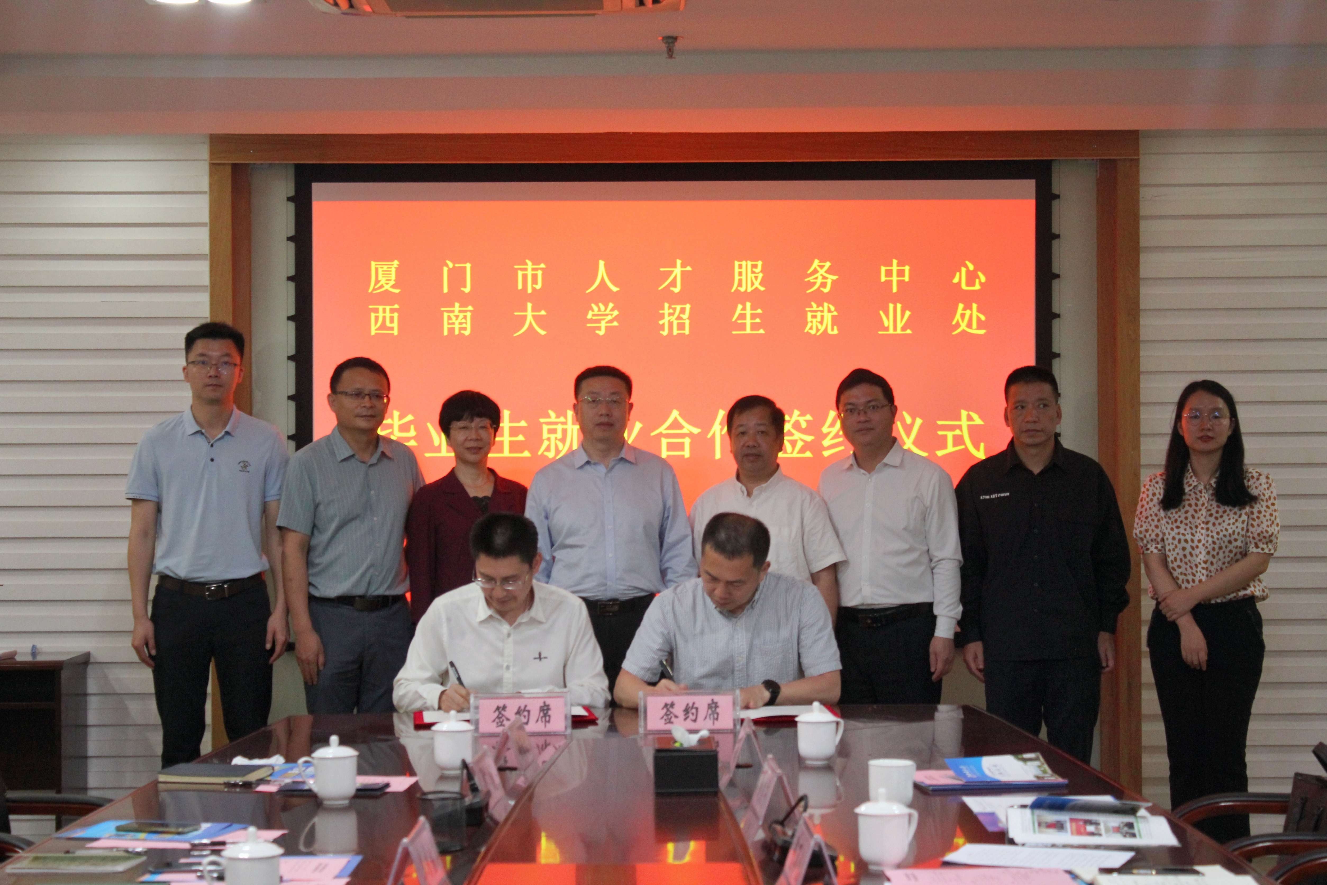 4月17日,夏玉峰一行赴厦门市人才服务中心考察交流。厦门市人才服务中心党总支书记、主任包伟文,党总支副书记、中心副主任陈七三,规划发展部部长陈万化,就业服务部部长陈云,厦门银祥集团有限公司总监陈映红等三家企业代表出席相关活动。双方汇报厦门市产业发展及人才政策、beat365在线唯一官网登录毕业生情况,就加强校地合作、精准对接供需交换意见,就进一步增加合作深度、提高合作精准度、拓展合作广度达成共识,并签订合作协议。