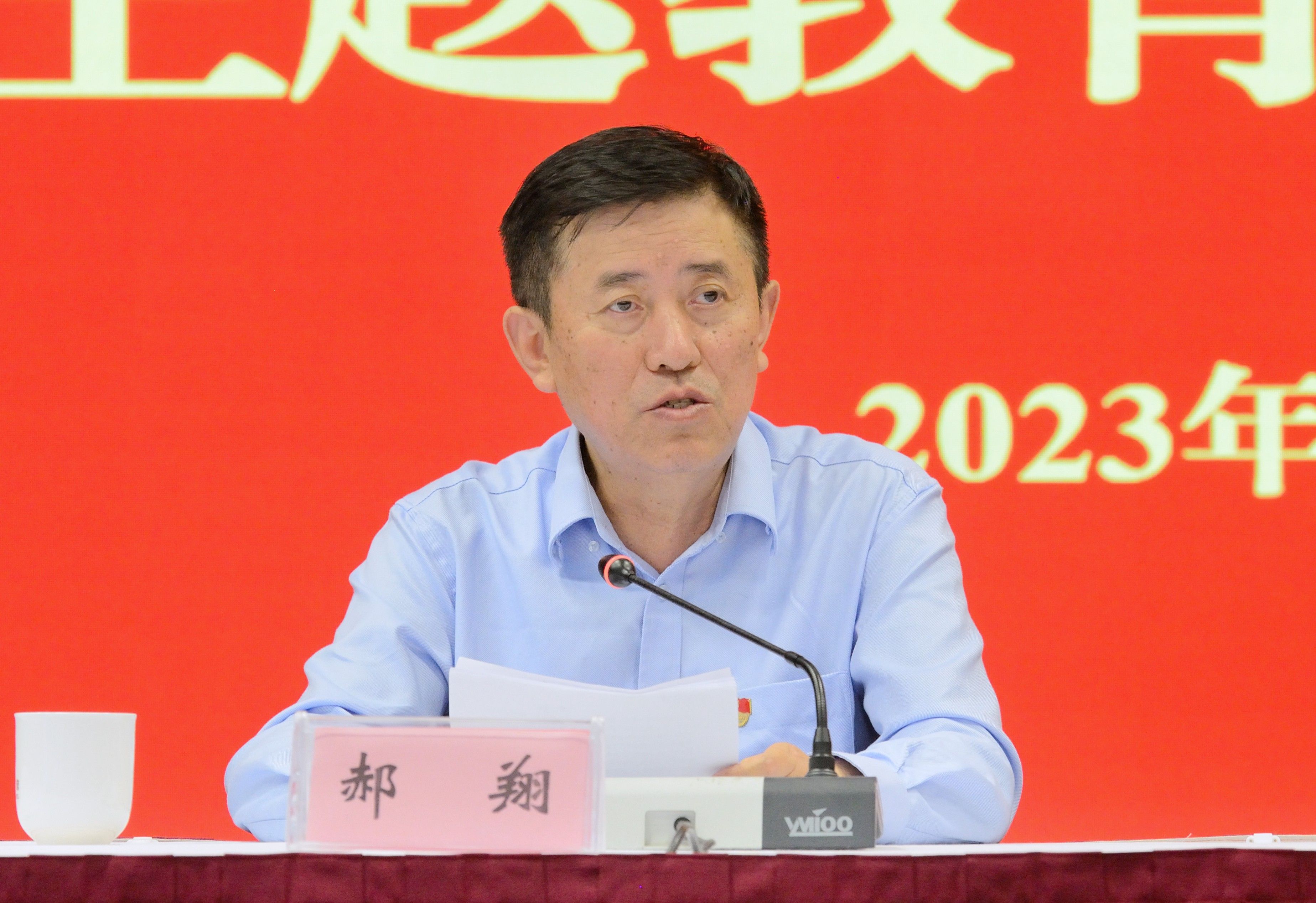 郝翔在讲话中强调,要从深刻认识开展主题教育的重大政治意义、理论意义、实践意义,紧紧锚定主题教育的总要求、根本任务、具体目标,鲜明体现党的教育方针、教育系统特色、直属高校担当,一体推进理论学习、调查研究、推动发展、检视整改,做好建章立制工作,认真履行主体责任,切实防止形式主义、官僚主义五个方面贯彻落实好党中央决策和教育部党组部署,增强政治担当,加强领导、精心组织、狠抓落实,把学和做结合起来、查和改贯通起来,把各项工作做到位,推动主题教育取得扎实成效。