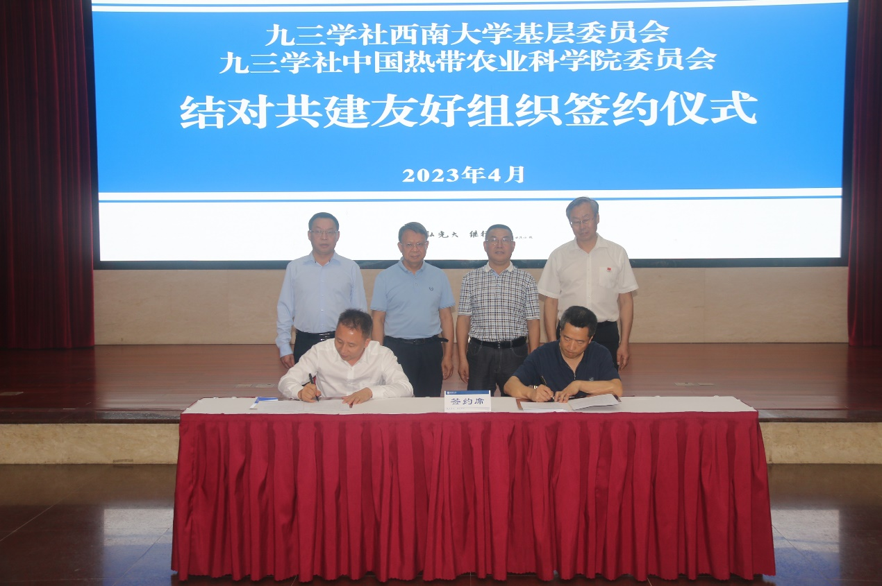 在结对共建协议签约仪式上,学校党委副书记安春元致辞,安春元介绍了学校统战工作和九三学社基层委员会基本情况,对校地双方开展的民主党派合作交流表示支持,并祝愿结对共建活动取得丰硕成果。九三学社海南省儋州市基层委员会与九三学社重庆市北碚区委员会、九三学社中国热带农业科学院委员会与九三学社beat365在线唯一官网登录基层委员会分别签订结对共建友好组织战略合作协议。杨锋、周耀柒、黄华分别讲话。
