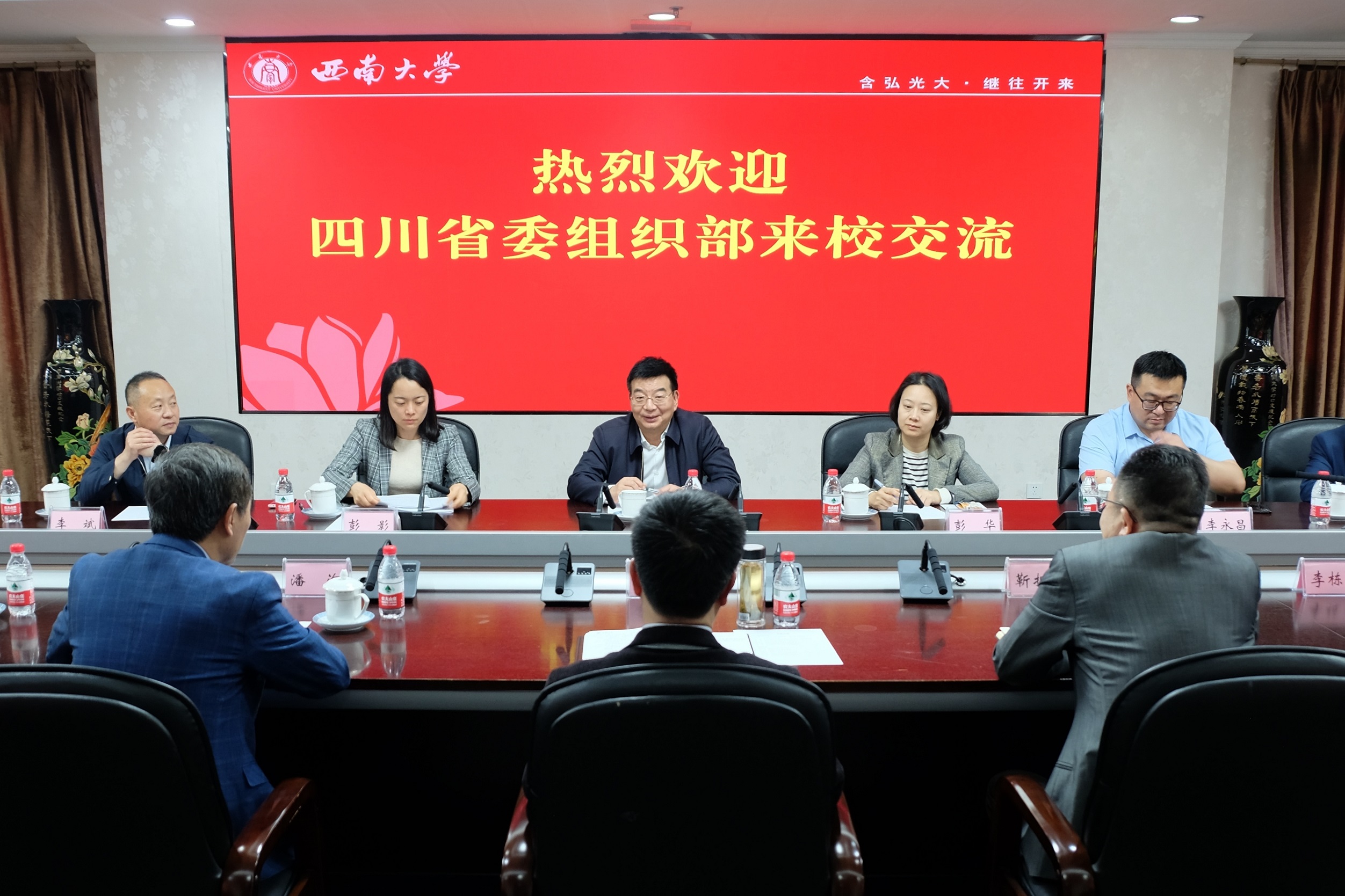 5月9日,四川省委组织部副部长、省公务员局局长、省委人才办主任李国贵带队来学校考察交流。学校党委书记李旭锋、党委副书记潘洵会见并出席座谈交流会,学校党政办公室、招生就业处、国内合作处等单位主要负责人参加会议。