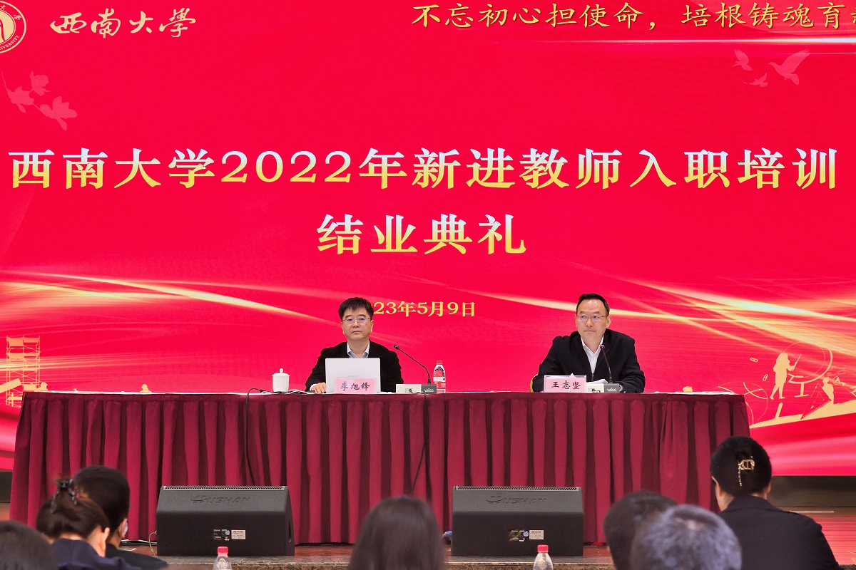 5月9日上午,学校2022年新进教师入职培训典礼在国际学院报告厅举行。学校党委书记李旭锋出席活动并为新进教师作题为“中国式现代化进程中高校人才的责任与担当”的讲座,副校长王志坚主持结业典礼。