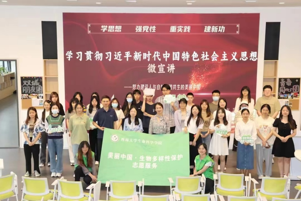 为深入学习贯彻党的二十大精神,认真贯彻落实党中央决策部署,牢牢把握“学思想、强党性、重实践、建新功”总要求,高标准高质量推动习近平新时代中国特色社会主义思想主题教育走深走实,值5.22国际生物多样性日来临之际,生命科学学院在学校青李空间举办学习贯彻习近平新时代中国特色社会主义思想微宣讲比赛。