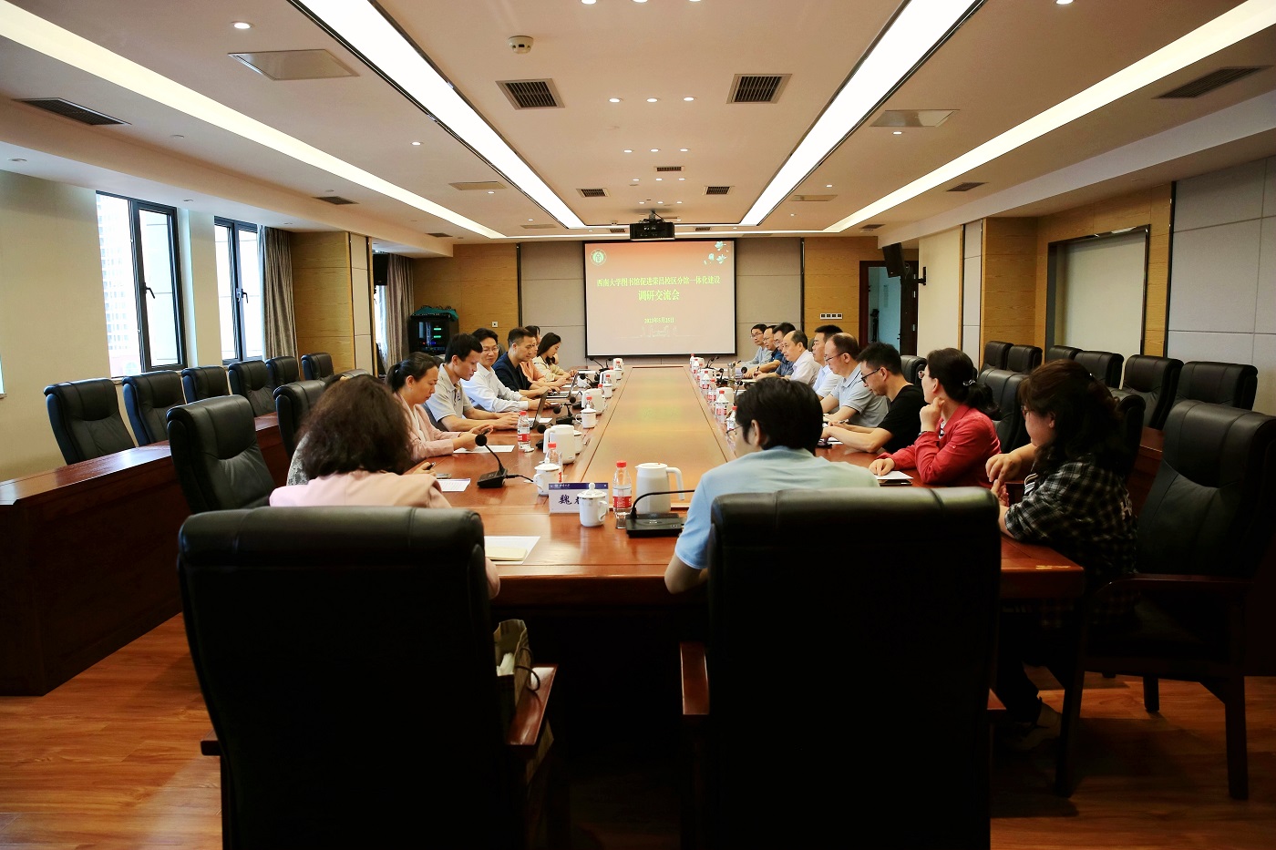 5月25日,图书馆党委根据主题教育工作安排,组织图书馆党政领导、党委委员、纪委委员一行10余人赴荣昌校区,与荣昌校区图书馆及校区党工委、管委会领导及相关同志,就如何更好推进荣昌校区图书分馆一体化建设进行了座谈交流。座谈会后还组织参观了重庆市德廉教育基地——喻茂坚纪念馆。