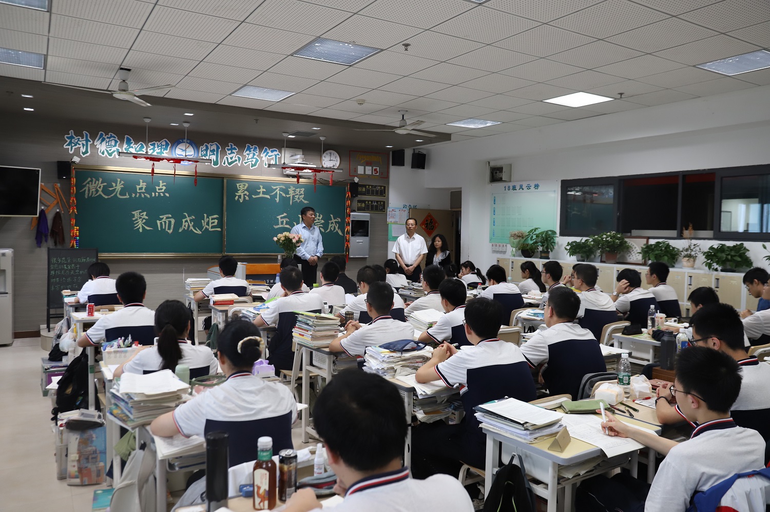 张卫国一行去到初三、高三年级教室、教师办公室看望并慰问奋战在一线的师生,张卫国代表学校感谢各位教师的辛勤付出和无私奉献,勉励考生们坚定信心、鼓足干劲,全力冲刺高考、中考,为实现人生目标勇往直前!