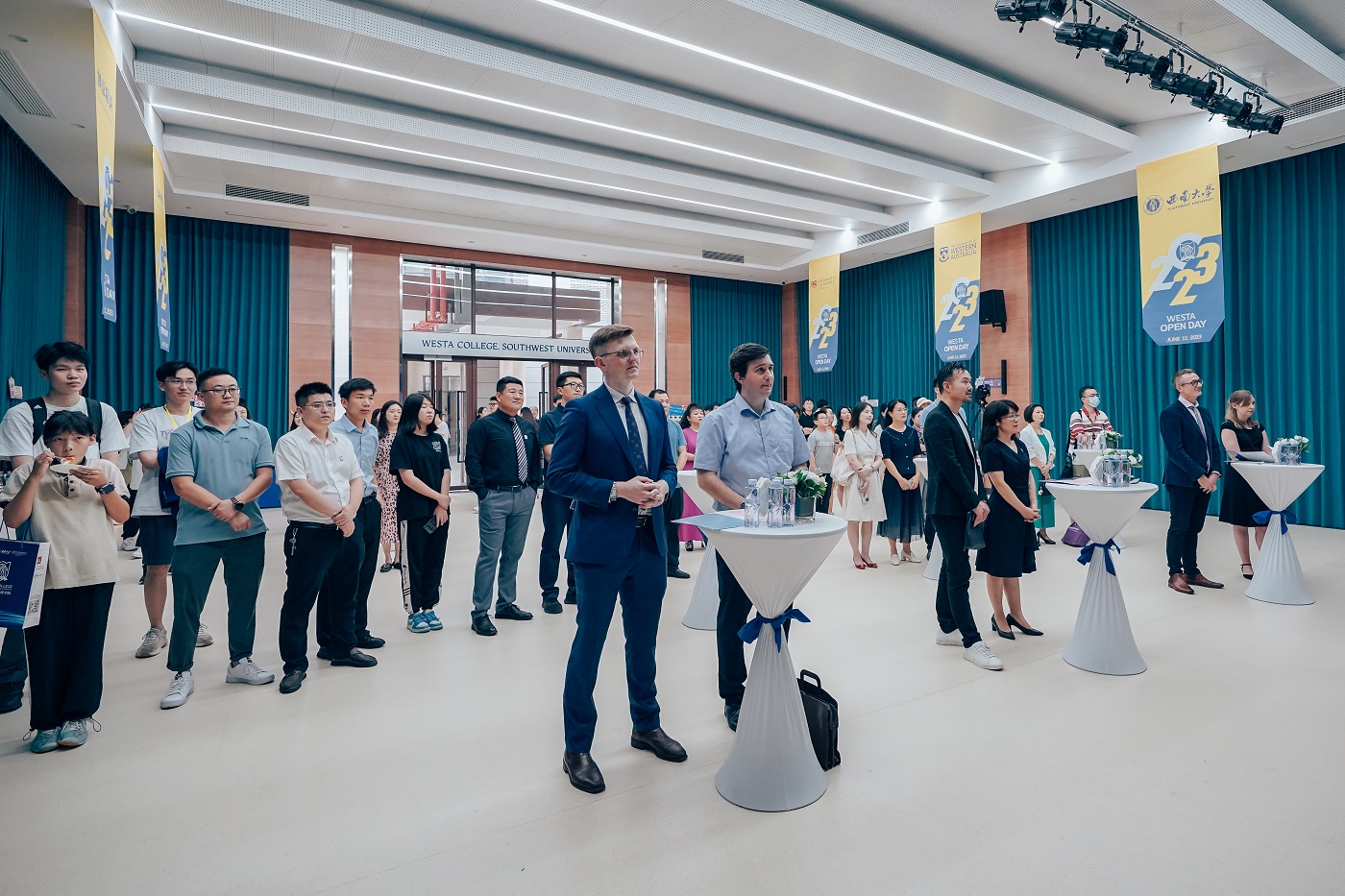 副校长、西塔学院院长赵玉芳介绍学校作为教育部直属重点综合性大学师资及学科优势,分享西塔学院在国际化人才培养等方面的特色模式与卓越成效。澳大利亚驻成都领事馆领事林慕柏高度肯定西塔学院在中澳高等教育领域的成功探索。三校代表和师生代表发言,分享国际化人才培养和学生成长方面的宝贵经验。西塔学院党委书记王静总结讲话并宣布开放日活动开幕。