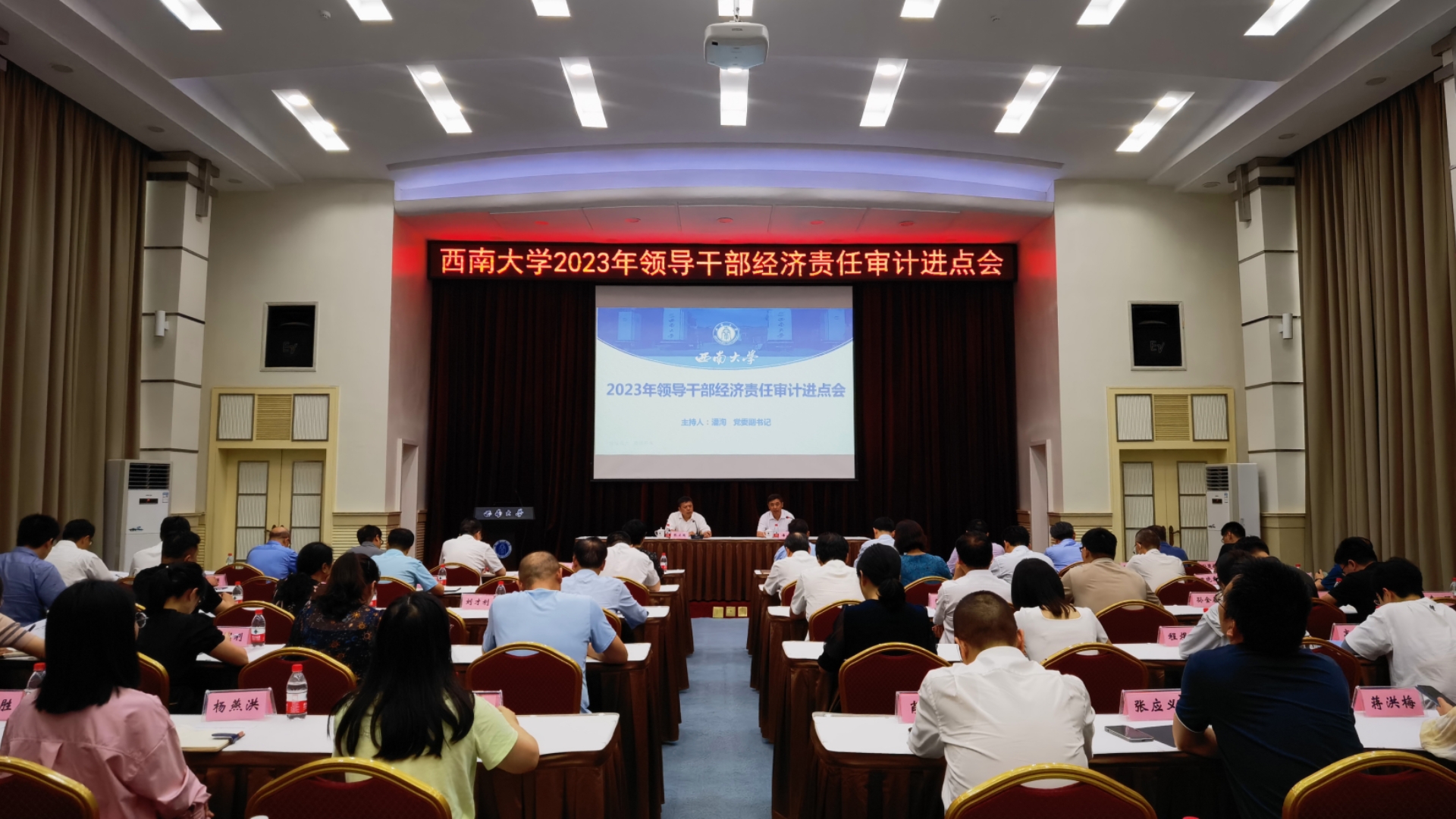 6月20日,学校召开2023年领导干部经济责任审计工作进点会,动员部署相关工作。校长张卫国出席会议并讲话,党委副书记潘洵主持会议。领导干部经济责任审计领导小组成员单位负责人、被审计领导干部、被审计单位办公室主任及审计处相关工作人员参加会议。