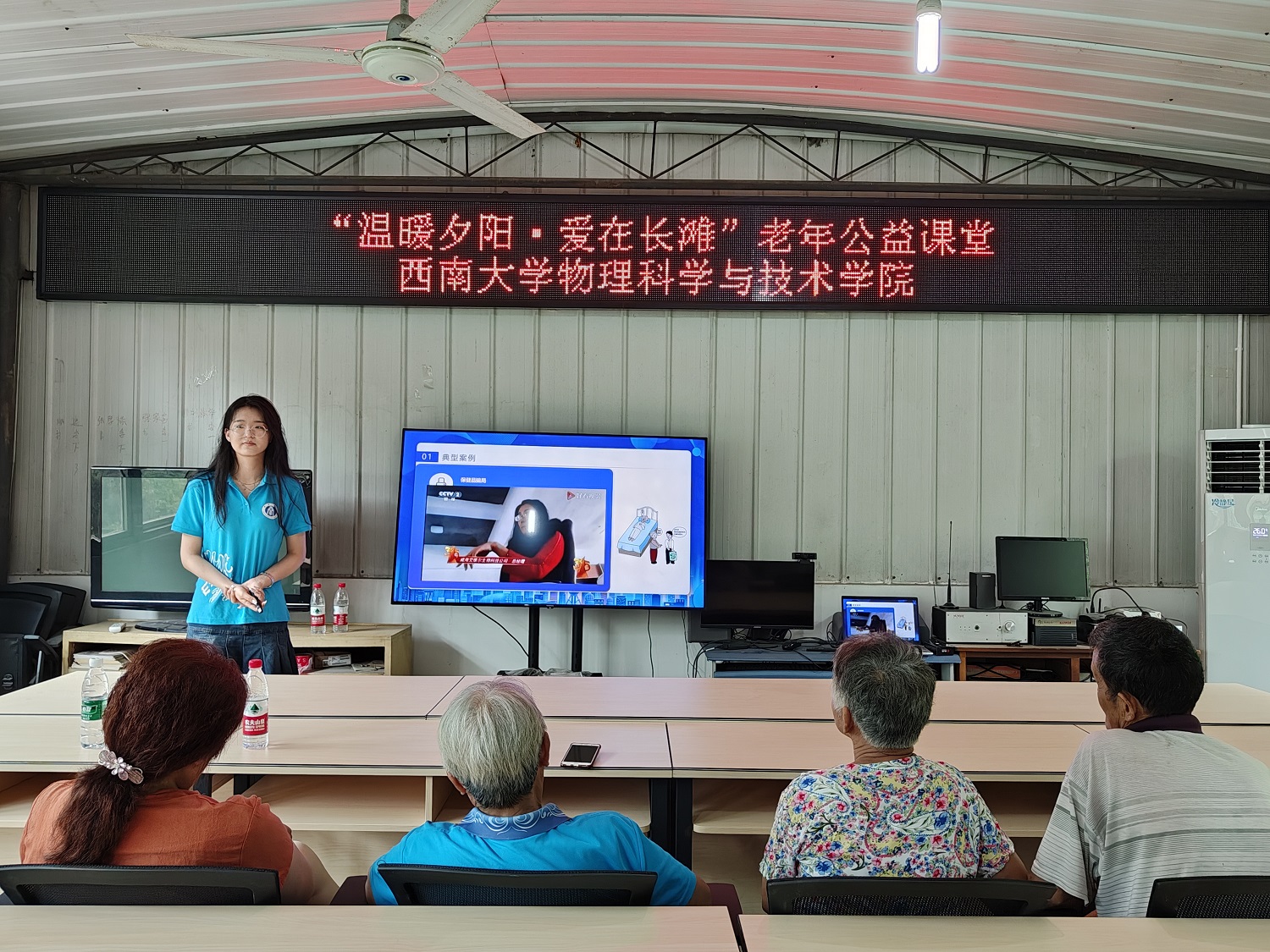 “3、2、1,升空!”7月4日上午在长滩村村委会的院坝里,小朋友们在beat365在线唯一官网登录科普空间站大哥哥、大姐姐们的指导下装水、加压、发射。竭尽全力地打足气后,水火箭“嘭”的一声升空的那一刹那,小朋友们都欢呼雀跃。7月4日下午在燎原社区会议室里,“怎样折纸飞机才能飞得更远呢?”“下雨天比雷声更早出现的是什么呢?”实践团的小老师们继续为小朋友们带来生动有趣的暑期嘉年华活动。与此同时,针对长滩村居住分散、留守老人多的特点,实践团的成员们积极参与老年健康教育服务,精心准备了两期“温暖夕阳 爱在长滩”老年公益课堂。围绕健康养生、自救自护、防范电信诈骗等主题,以图文并茂、寓教于乐的形式进行了常见疾病的自我管理教育和医保相关政策宣讲。
