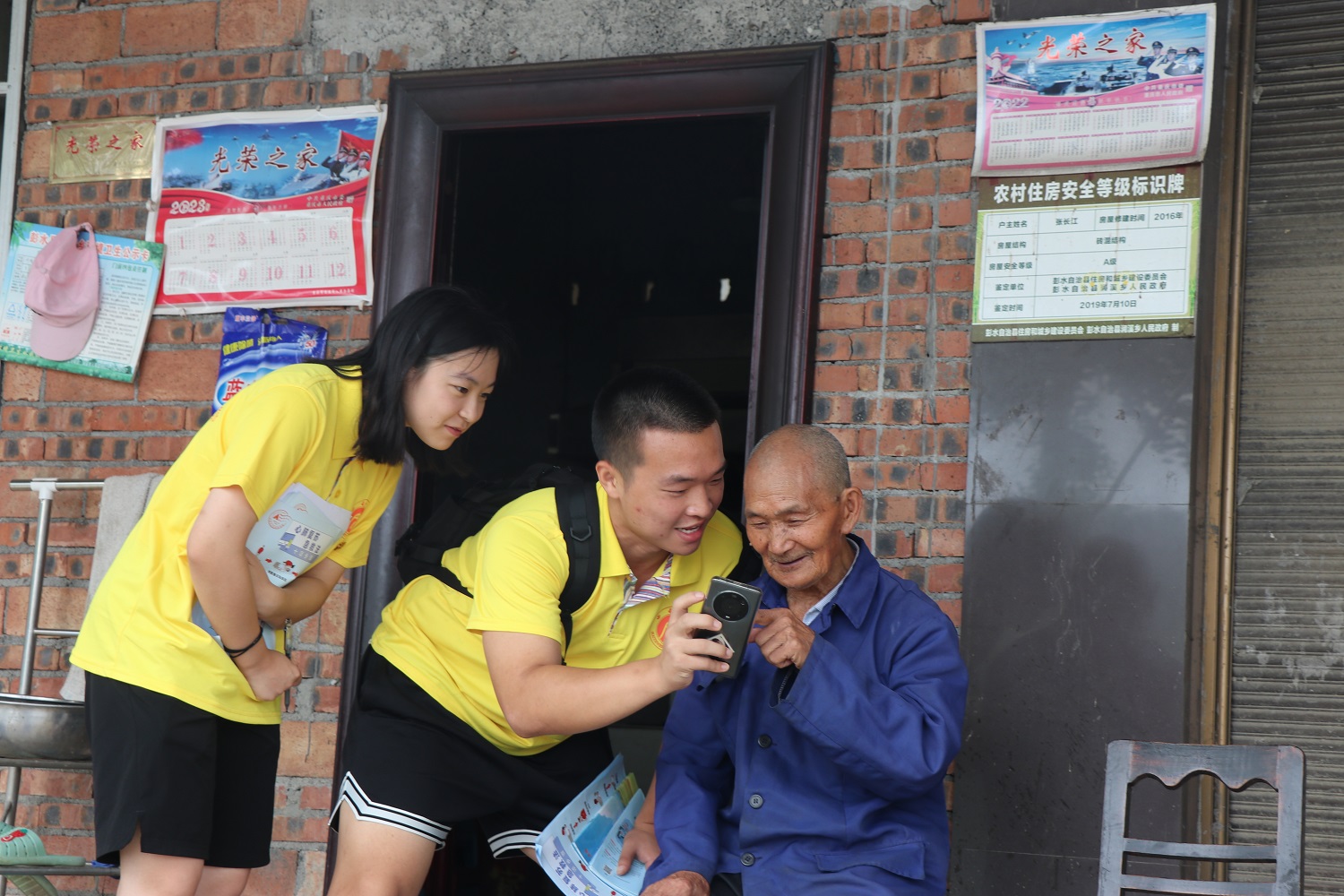 为了将党的创新理论传达到基层农户心间,7月6日至9日实践团以“集中宣讲+分散入户”双线并行的方式开展惠农政策、党的理论宣讲,反诈防骗知识宣传等。在白果坪村村委会,村民们围坐在一起,全神贯注,聆听实践团的同学宣讲党的二十大精神、2023年中央一号文件和防诈骗知识。实践团成员在准备过程中认真研读政策内容、把握精髓要义、吃透文件精神,收集润溪乡发展真实典型案例,将理论与实例相结合,以方言形式进行宣讲,让村民听得懂、喜欢听、能领会。面对当前各种诈骗手段层出不穷的不良形势,为切实提高农村群众尤其是农村老年人的自我防范意识,预防和减少诈骗案件发生,实践团印制防诈知识宣传单,在走访调研过程中随时随地向村民进行宣传。根据村民们的劳动作息时间和生活习惯,实践团还选择在傍晚开展坝坝集中宣讲,“天上不会掉馅饼,当心地上有陷阱;诈骗手段日益新,老年人务必小心”,小喇叭循环播放防诈标语的声音从樱桃井村村委会的坝子里传出,村民们陆续集中起来,实践团针对村民生活习惯,在傍晚开展坝坝宣讲,通过现场讲述具体案例和表演情景短剧的方式生动直观地向村民剖析新型诈骗方式,揭露冒充公检法、虚假保健品、投资理财等典型诈骗手段。“你们做得好,现在好多骗子在城里骗不到人,跑到农村专门骗老年人”,村民听完宣讲后纷纷对实践团成员的做法表示充分肯定。宣讲结束后,实践团还为村民播放《万里归途》《十八洞村》等展示党和国家在新时代十年取得发展成就的主旋律影片,增强村民的自豪感的同时丰富其精神文化生活。