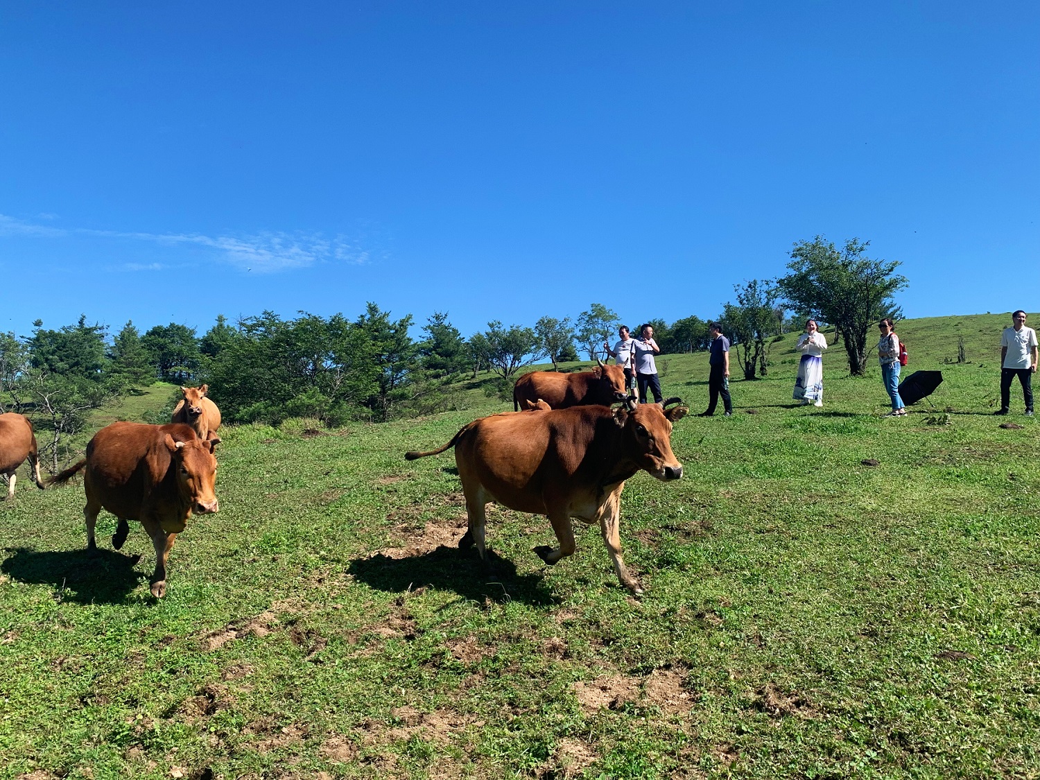 服务队随后来到河鱼乡平溪村的“农耕文化”博物馆,通过考察观摩乡村振兴新成果,进一步提振了教职工们在乡村振兴中的参与感、价值感与自豪感。参观结束后,服务队集体前往位于海拔2500米高山上的肉牛养殖场实地走访,详细询问农户养殖生产中遇到的困难和问题并予以现场指导;前往正阳草甸,对高海拔草甸的畜草种植进行了实地考察指导。