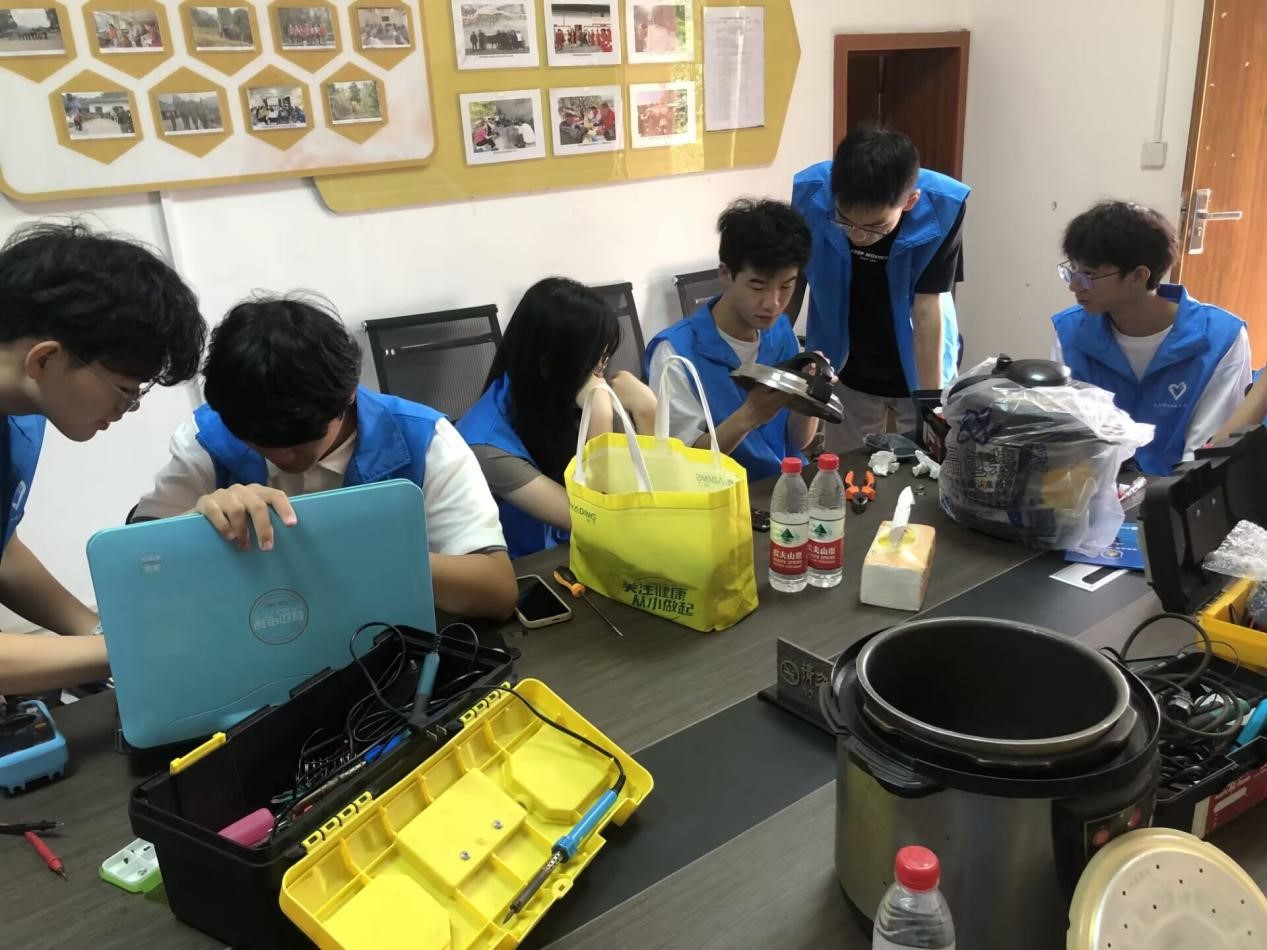 次日,实践团在村中开展“无忧家电”特色活动,将所学的理论知识付诸实践,为村民们维修损坏电器设备,普及安全用电知识。村中许多老人面临着不会使用复杂电器的问题,存在较大的用电安全隐患,队员们走进各家各户,普及用电常识,帮助村民们正确使用复杂电器,解决用电困难,同时收集了十余件损坏的家电集中在村委活动室维修。实践团分成三个小组对各个家电进行“病因”分析将家电进行拆解、零件更换、功能测试,使家电能正常工作。通过成员们的积极思考与不懈努力,家电的维修率达到75%。此次无忧家电等活动架起了实践团成员们与村民们沟通的桥梁,拉近了实践团成员们与村民们的距离,村民们感受到了实践团成员们的热忱,向实践团表达了感谢。