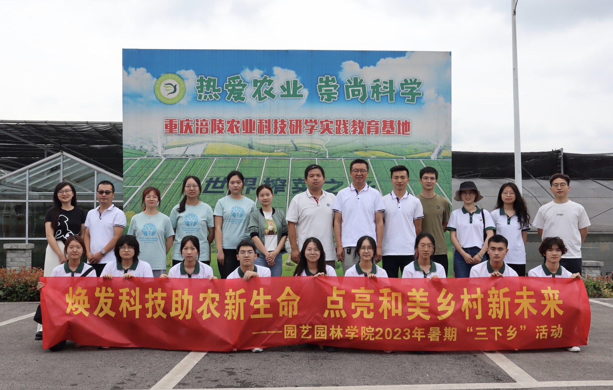为深入贯彻党的二十大精神,认真学习领会习近平总书记给中国农业大学科技小院的学生回信精神,厚植爱农情怀,练就兴农本领,投身强农实践,引导学生深入乡土中国深处,在社会课堂中“受教育、长才干、做贡献”,近日,园艺园林学院组织“寻访涪地,奋进新征程”师生实践团前往重庆市涪陵区二渡村、邓家村,开展了以“焕发科技助农新生命,点亮和美乡村新未来”为主题的暑期“三下乡”社会实践活动。他们参访科技小院,走在田间地头,深入农民家中,“用脚、用眼、用耳、用心”,在服务乡村振兴中解民生、治学问,感受脱贫攻坚新成就,争做乡村振兴新农人,绘就美丽乡村新画卷。