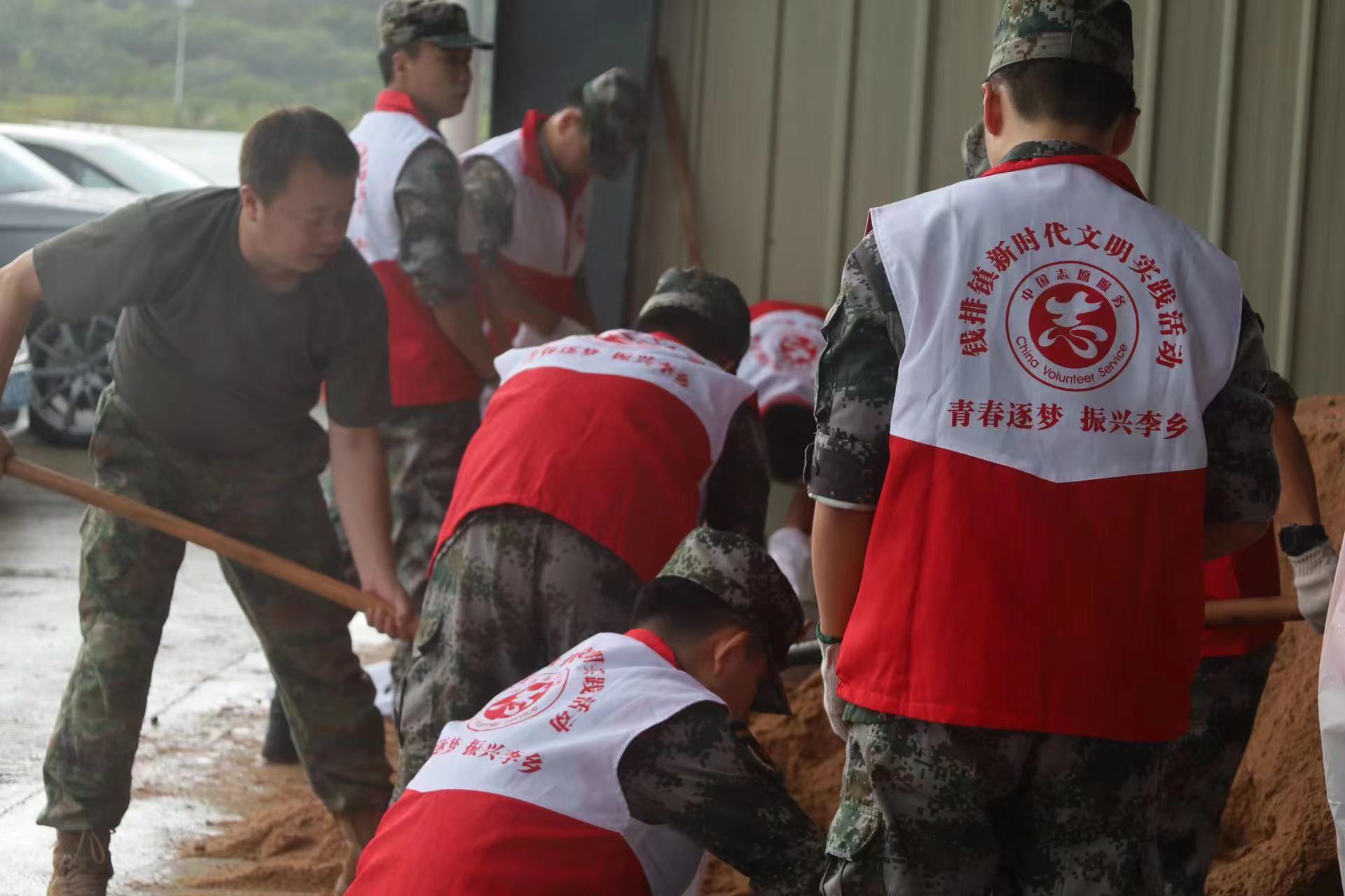 7月17日,受今年4号台风“泰利”影响,广东省茂名市钱排镇发生强降雨天气,导致当地河水暴涨,居民生产生活遭受严重影响,正在当地开展社会实践活动的beat365在线唯一官网登录砺剑班、beat365在线唯一官网登录学生女子国旗班、广东医科大学国旗护卫队、贵州工程应用技术学院国防预征班等10所高校400余名大学生第一时间响应共青团中央投身防风救灾号召,主动向所在地防风救灾指挥部门报到,充分发挥生力军和突击队作用,积极协助当地政府开展装备防水沙袋、搬运抢险物资、后勤保障、灾后环境恢复等防风抢险救灾工作。