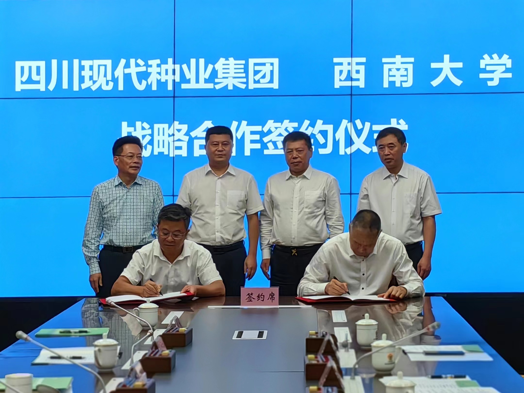 会后,学校领导一行赴四川省农业农村厅,与四川现代种业集团举行校企战略合作签约仪式。四川省农业农村厅党组书记、厅长徐芝文,厅党组副书记、副厅长卿足平,厅党组成员李宇飞,四川现代种业集团党委书记、董事长、总经理易飞,集团副董事长、常务副总经理伍蜀红出席签约仪式。省农业农村厅相关处室、四川现代种业集团相关部门负责人参加会议。