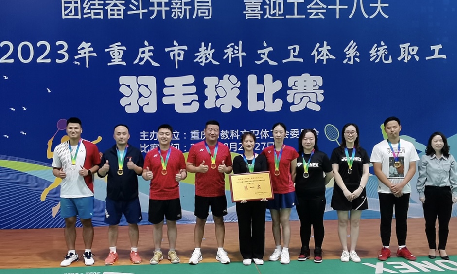 “中国梦·劳动美——凝心铸魂跟党走 团结奋斗新征程”2023年重庆市教科文卫体系统职工羽毛球比赛于9月26日至27日在江北区众邦(金源)羽毛球中心举行,学校教职工羽毛球队经过两天紧张激烈的比赛,六战全胜,再次获得教育系统第一名。